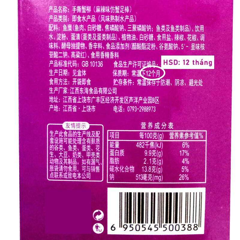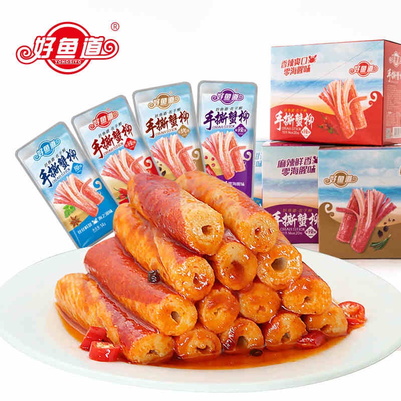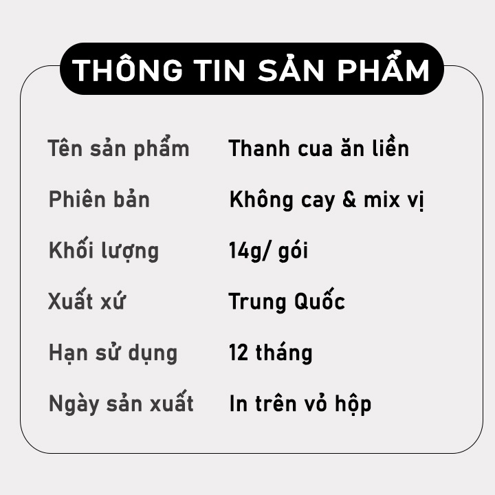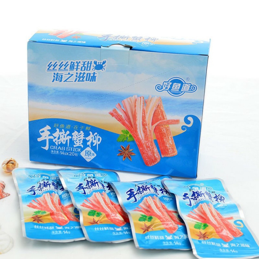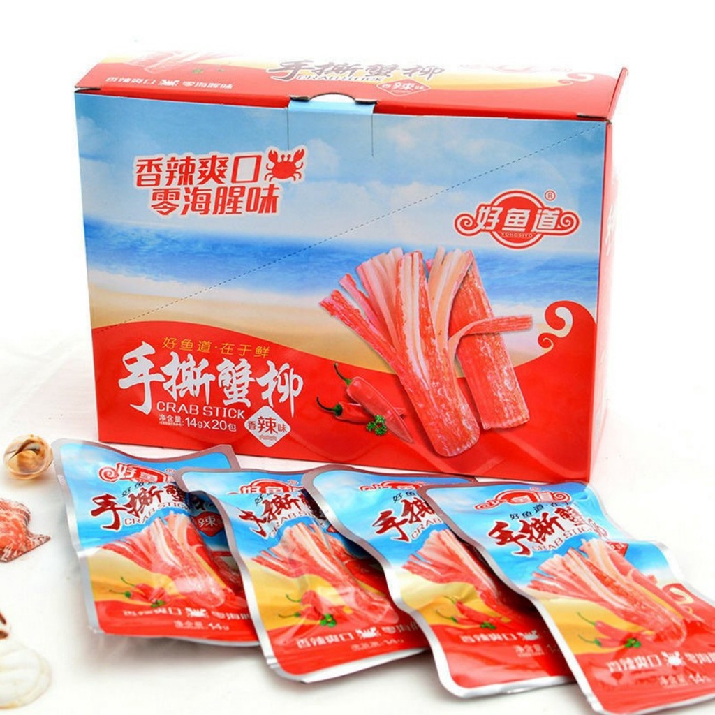 Thanh Cua ăn liền hộp 20 gói, đồ ăn vặt cay Trung Quốc, phi lê Cua từ Surimi tẩm vị để thả lẩu kết hợp chế biến nhiều