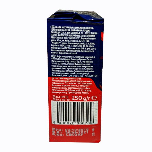 [HÀNG NHẬP KHẨU] Cà Phê Bột Crema E Gusto Lavazza - Cà phê bột gói 250g