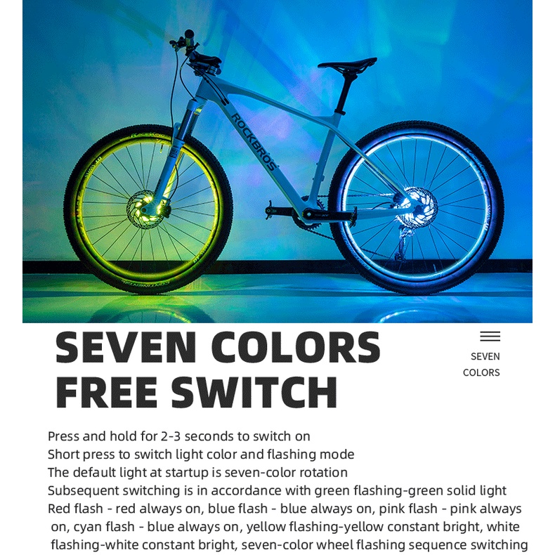 Rockbros Đèn Led Gắn Bánh Xe Đạp Chống Nước 7 Màu Kèm Sạc USB Chất Lượng Cao