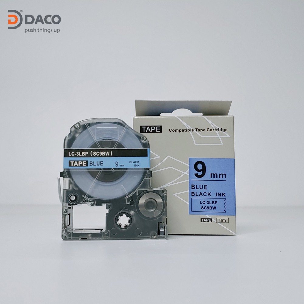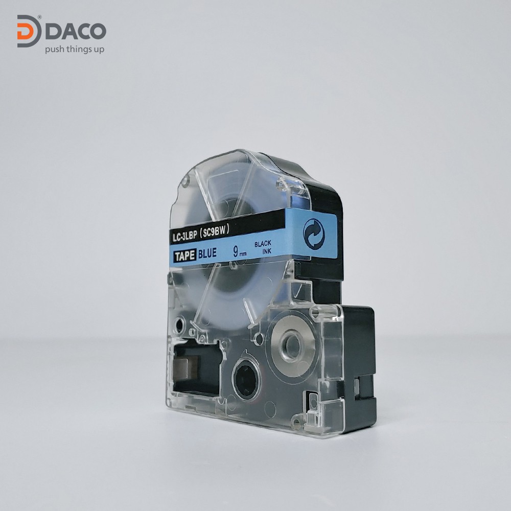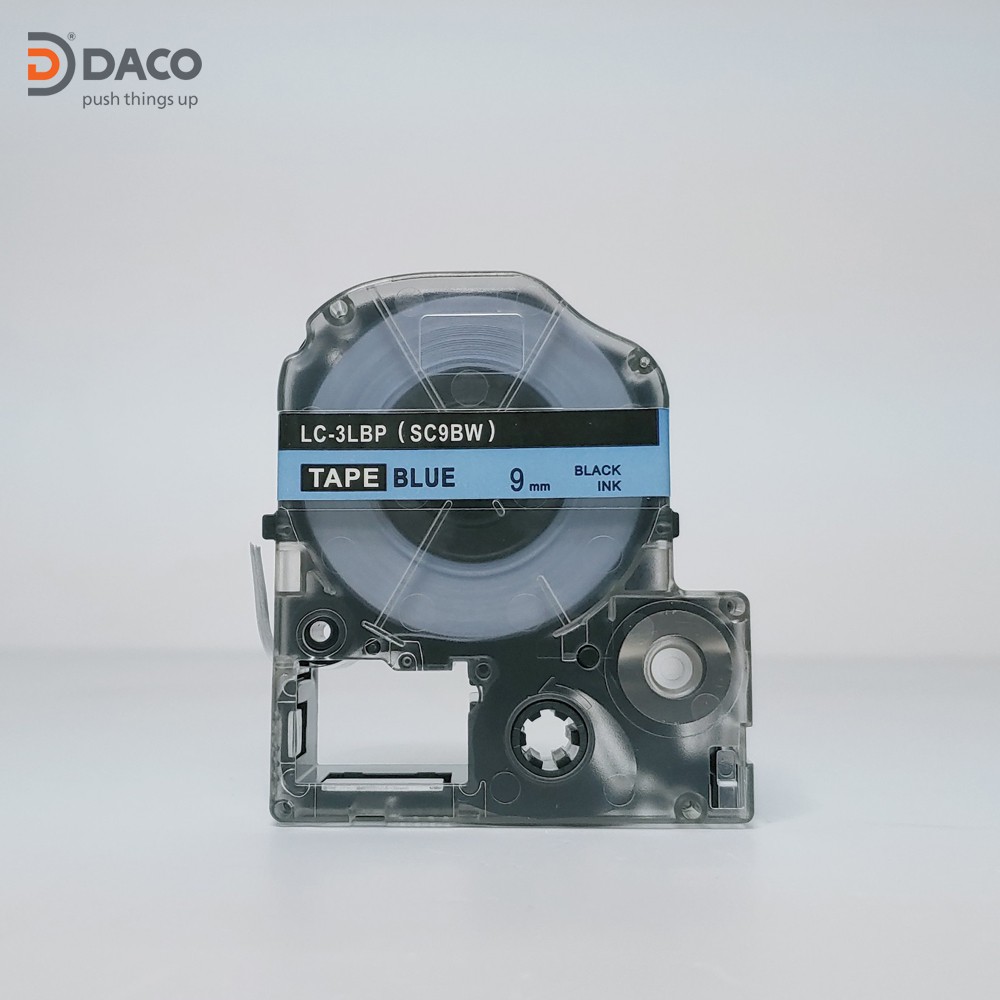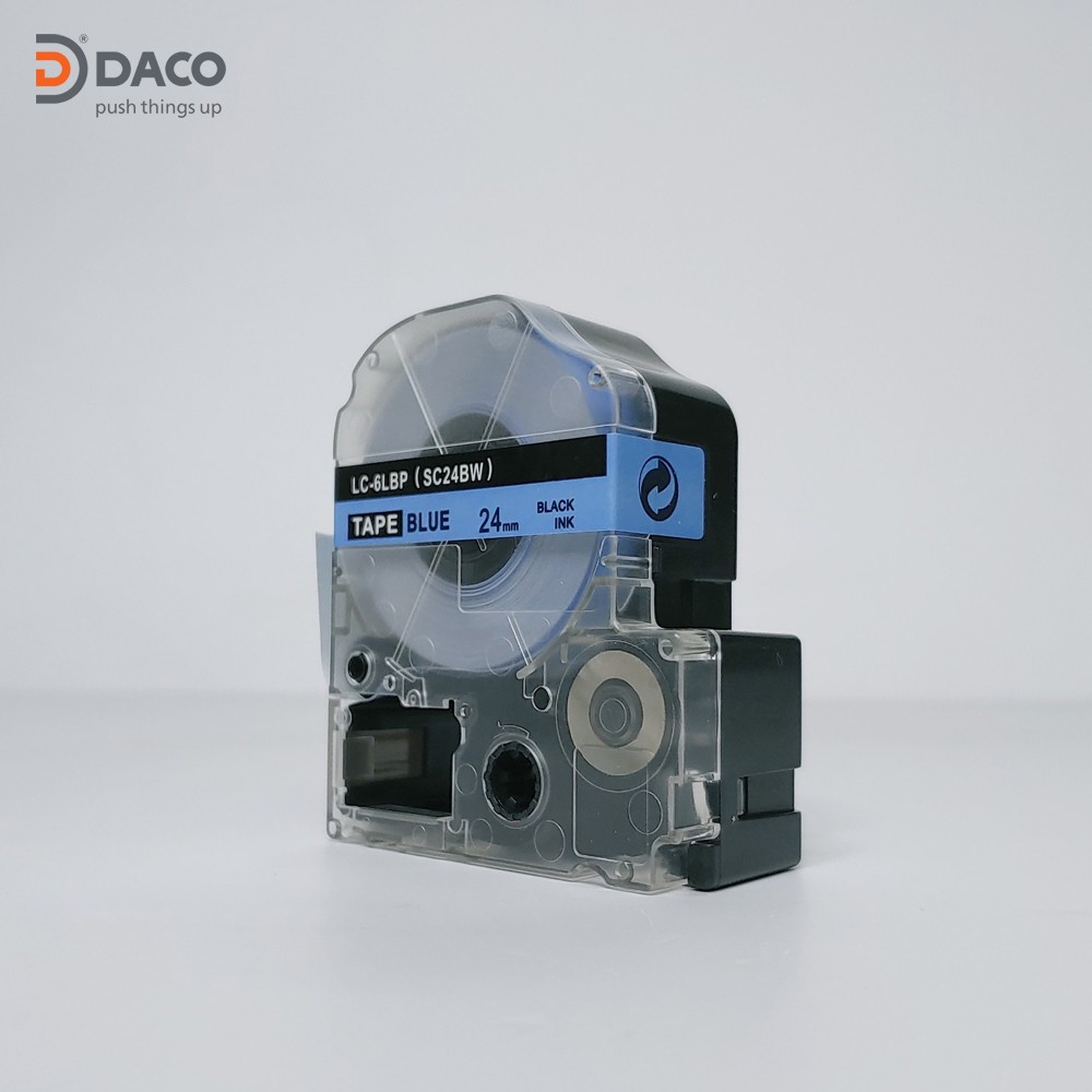 Nhãn in SC6BW sử dụng cho máy in Tepra và Espon chữ đen nền xanh blue 6mm x 8m