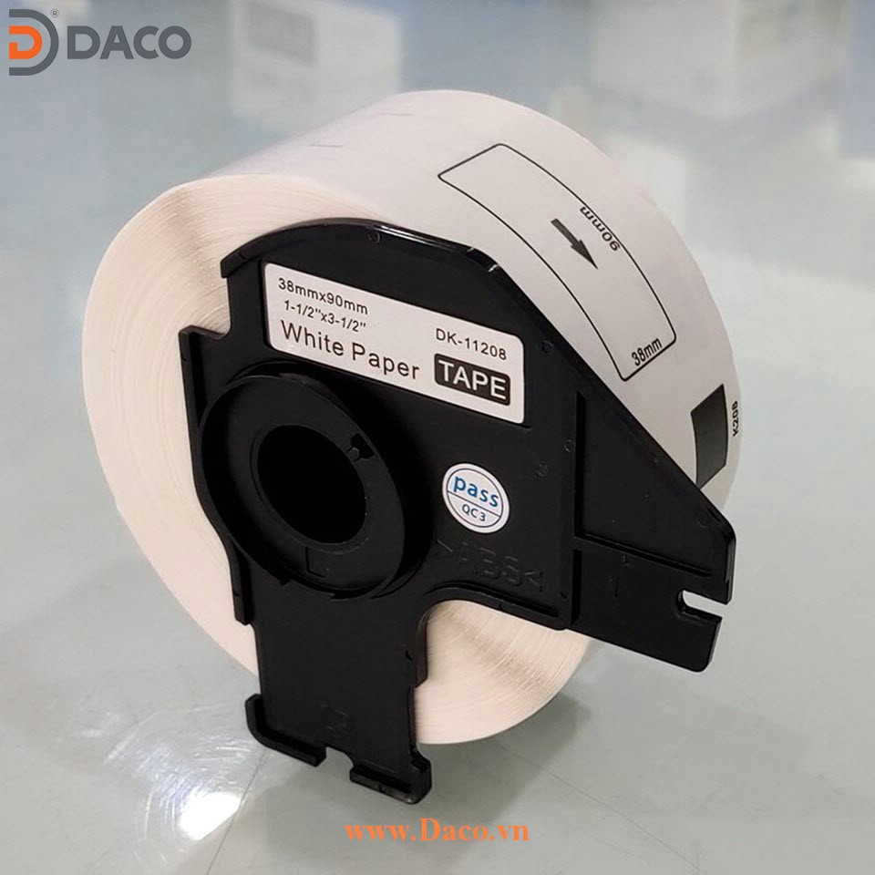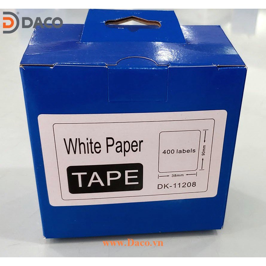 Nhãn giấy DK-11208 38mmx90mm 400 miếng Chữ Đen Nền Trắng