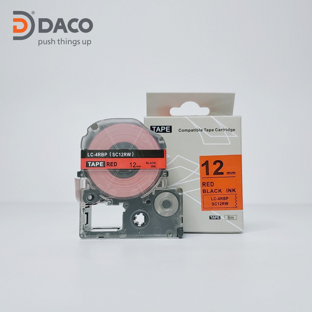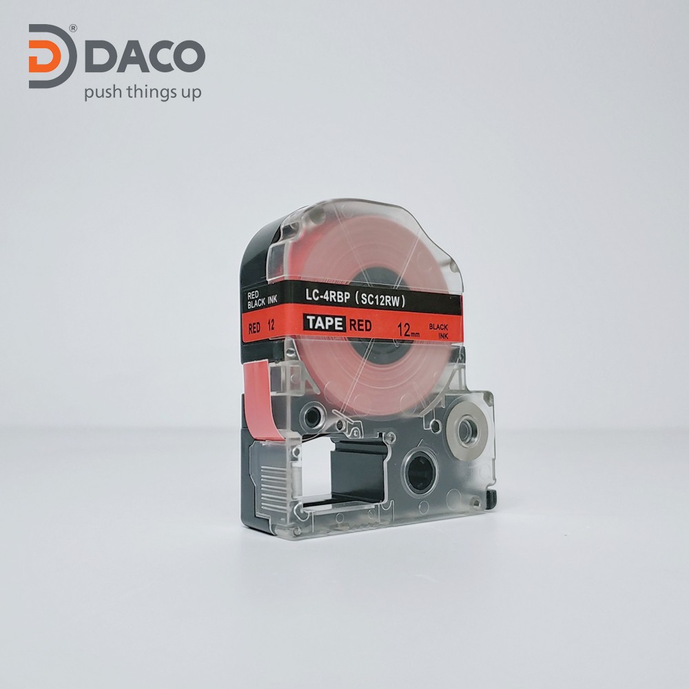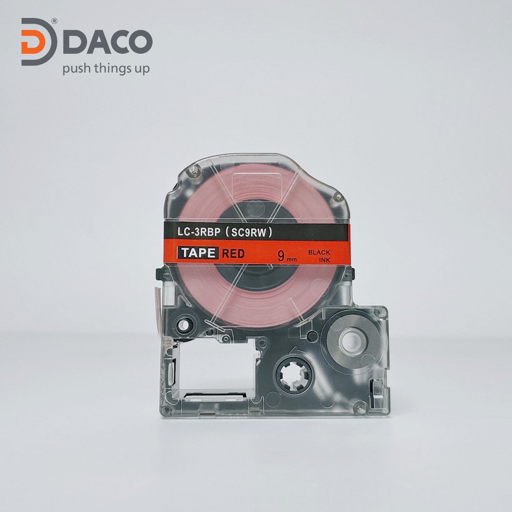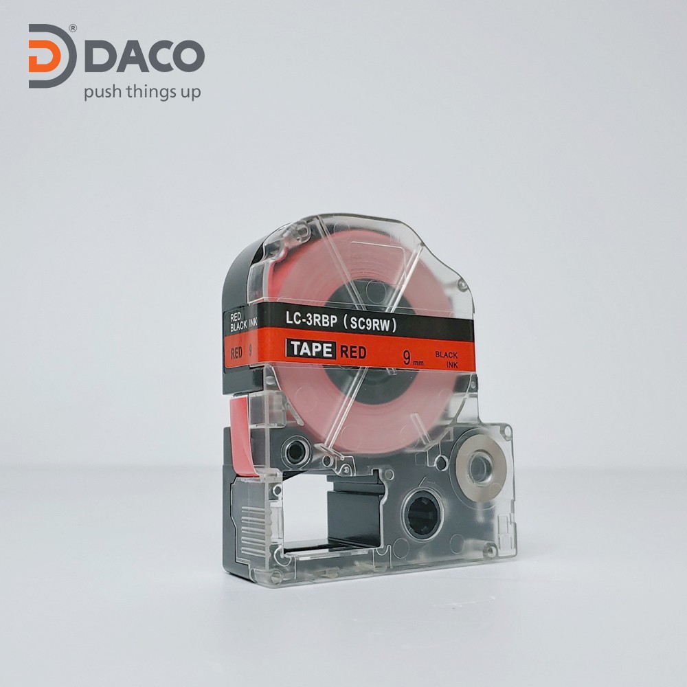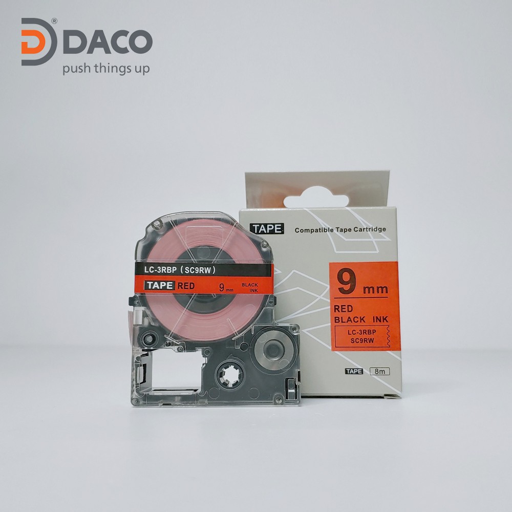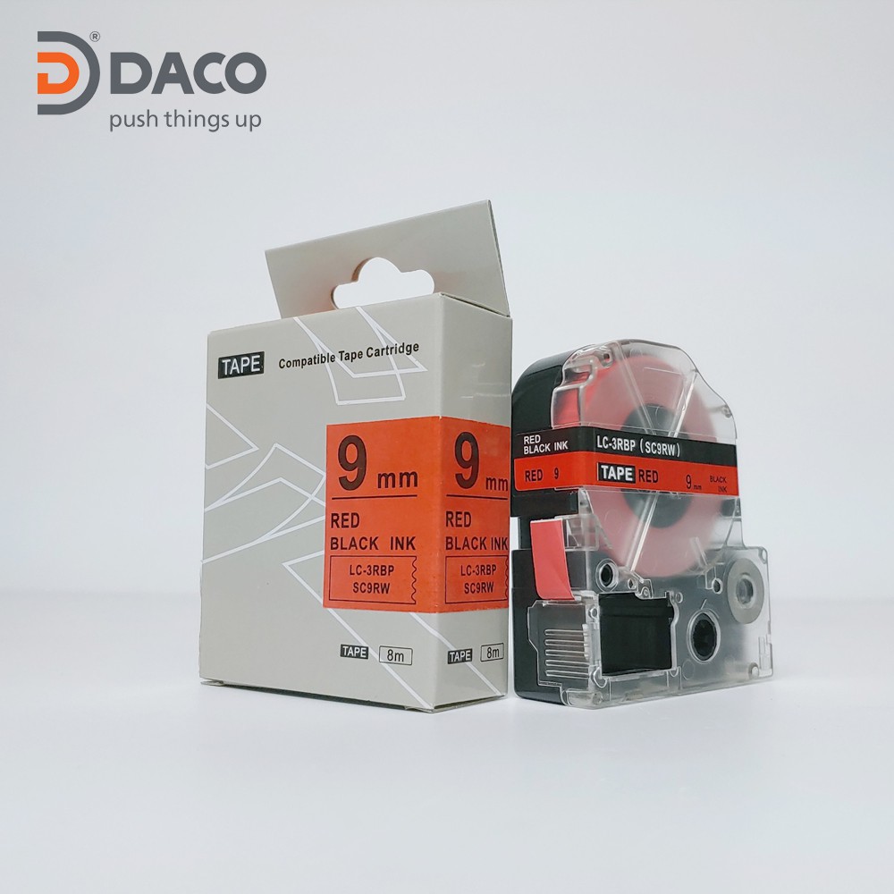 Nhãn in SC9RW sử dụng cho máy in Tepra và Espon chữ đen nền đỏ 9mm x 8m
