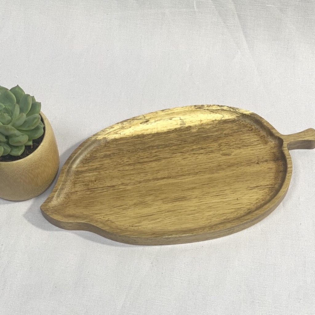 Khay gỗ keo hình lá K41 Size 26x13cm gỗ decor tự nhiên hình gỗ tiện nguyên khối, hàng Việt Nam