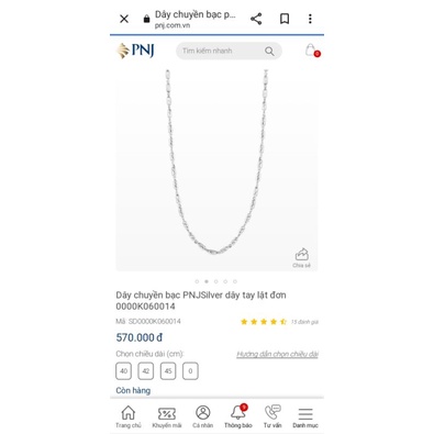 Thanh lý dây chuyền bạc PNJ chính hãng (mới 100% kèm hộp+bill online)