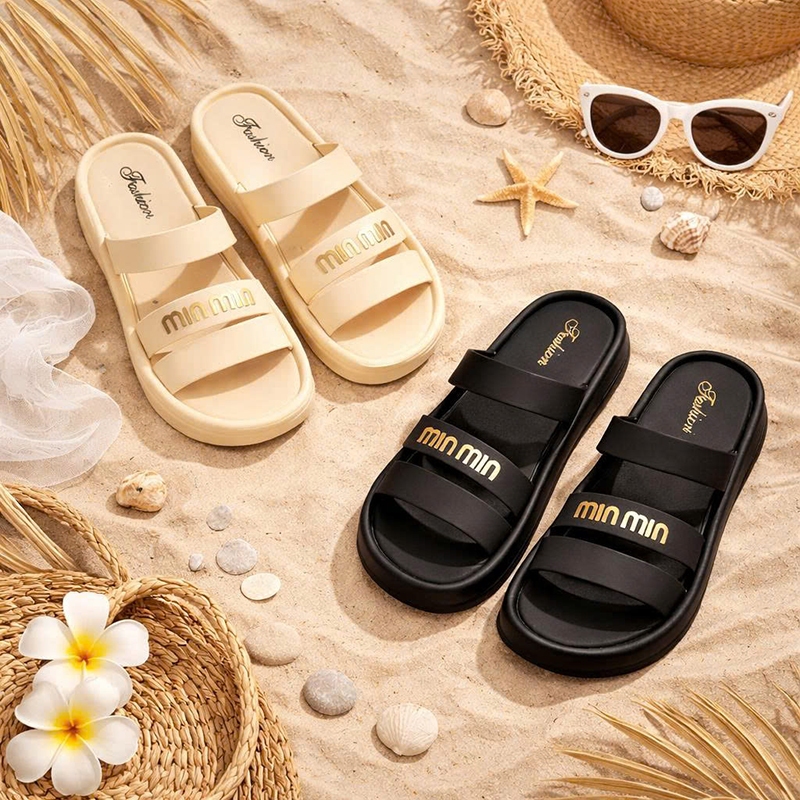 Dép Kiểu Nữ Sang Chảnh 3 Quai Ngang Đế Cao 2.5cm Êm Nhẹ, Dép Quai Ngang Min Min Nhựa Đúc Thời Trang