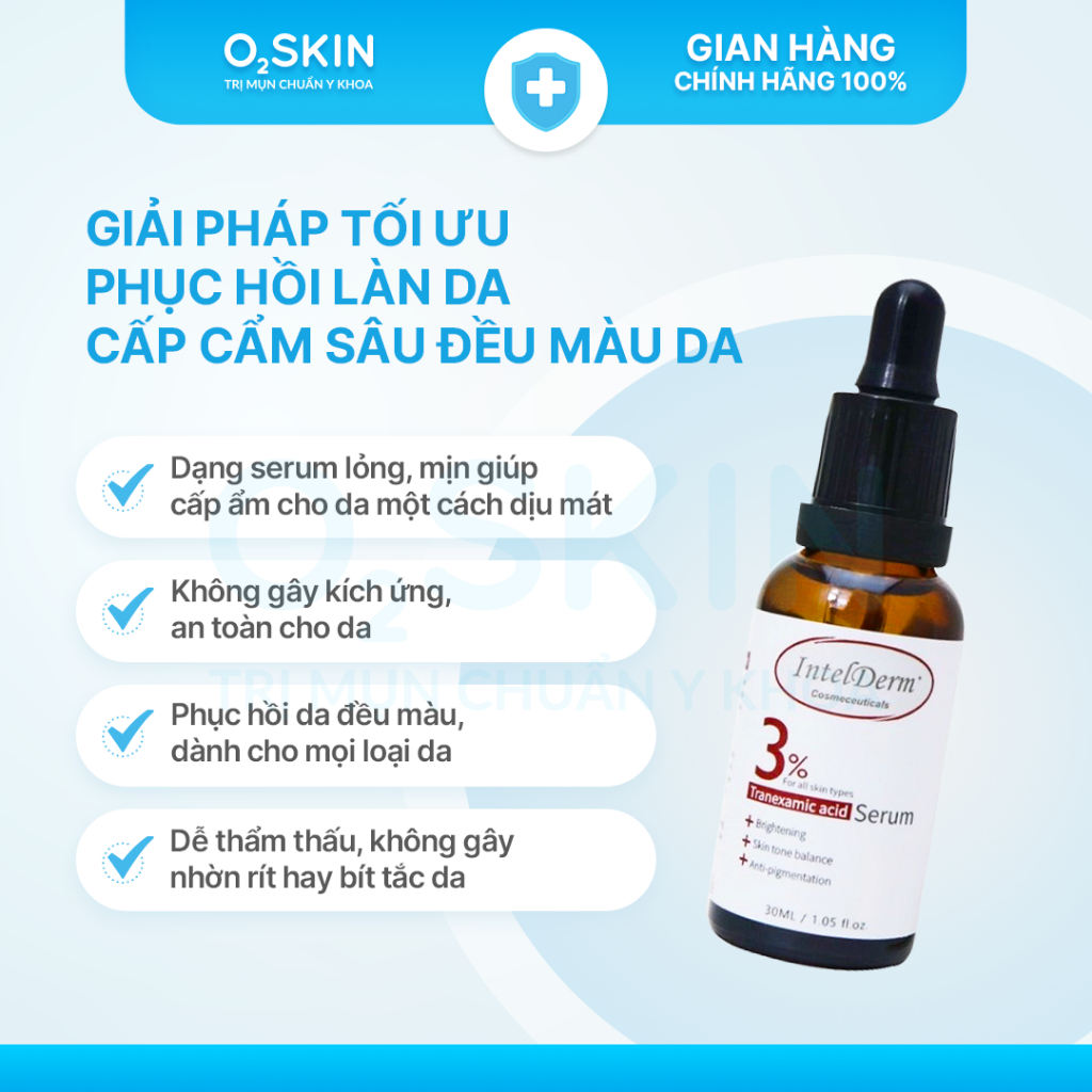 Serum làm sáng phục hồi da Intelderm Tranexamic 3% 30ml - Thấm nhanh cấp ẩm sâu mờ thâm da