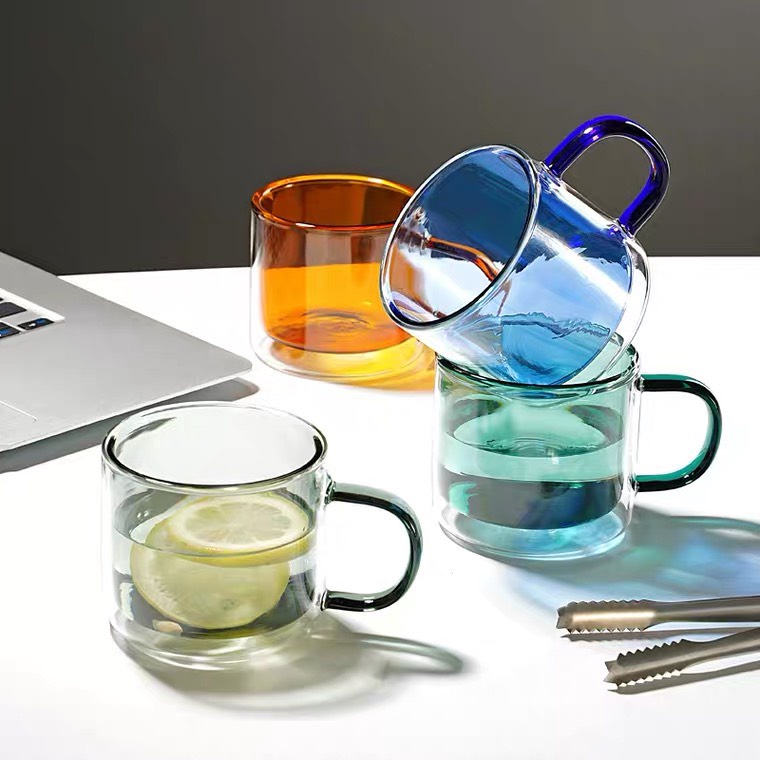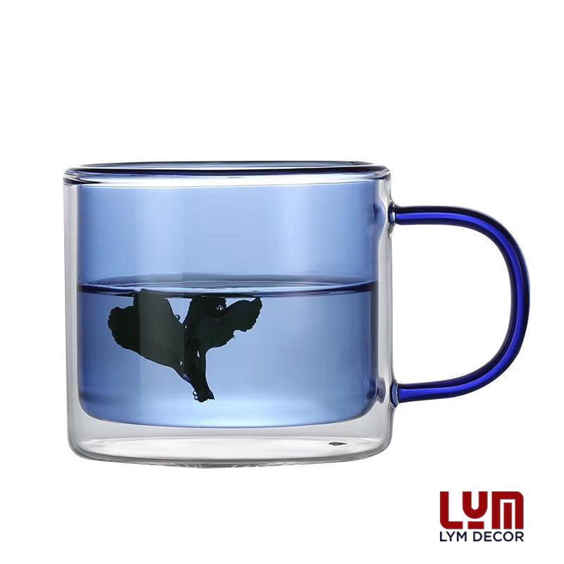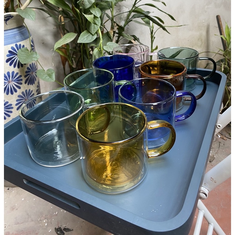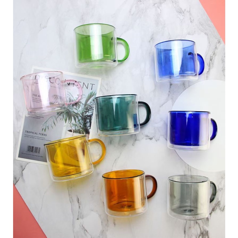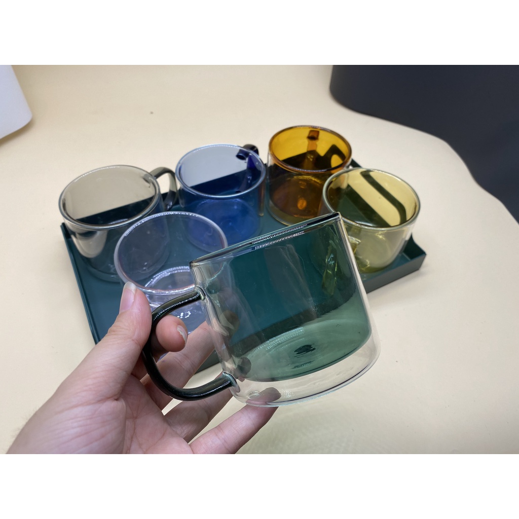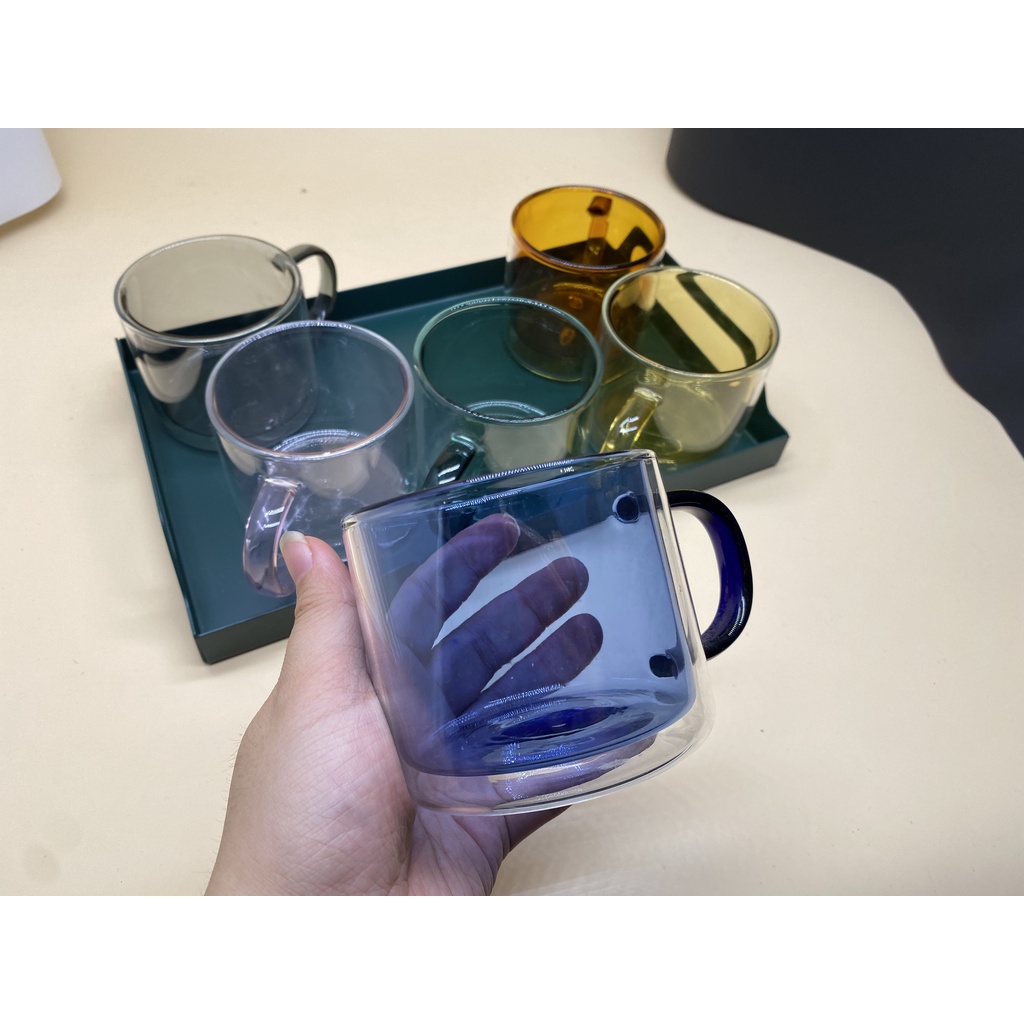 (SẴN) Cốc 2 lớp 2 màu 300ml - Cốc thủy tinh chịu nhiệt cao cấp không chì