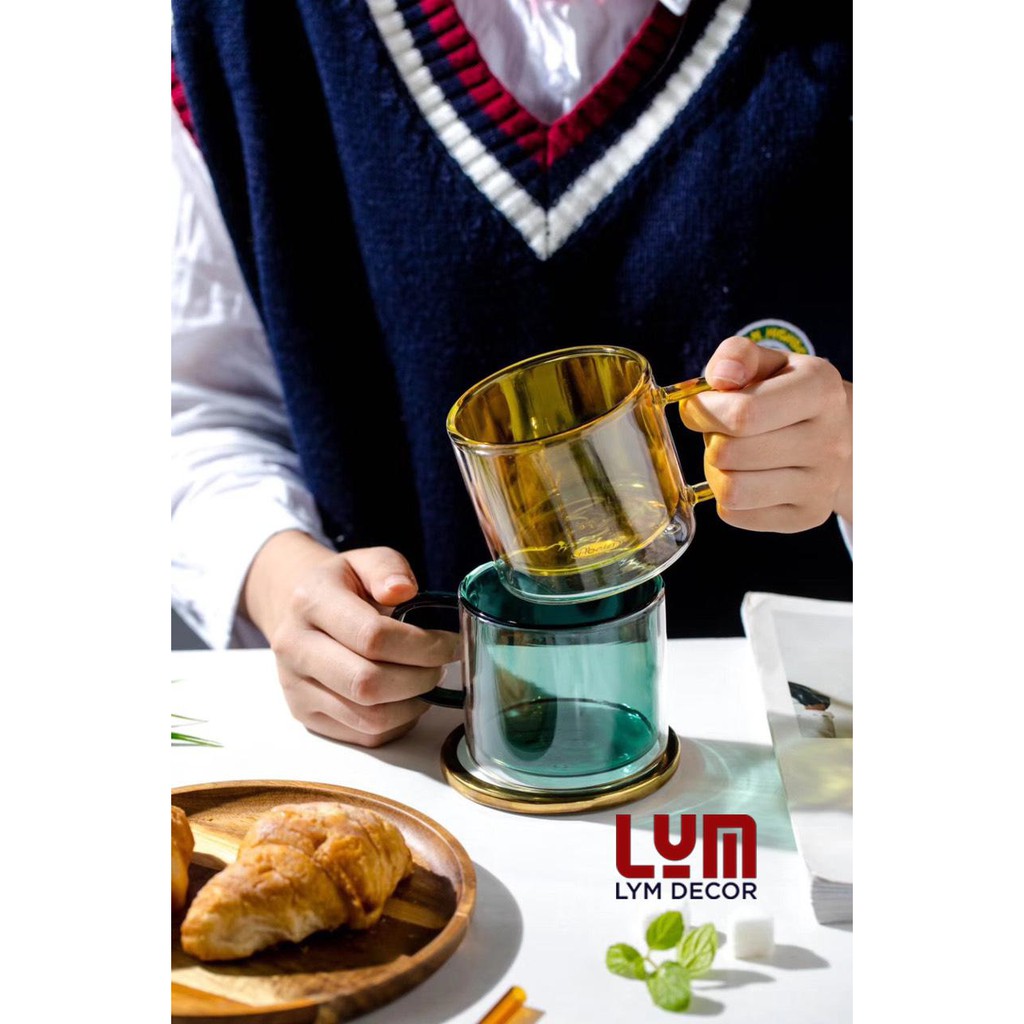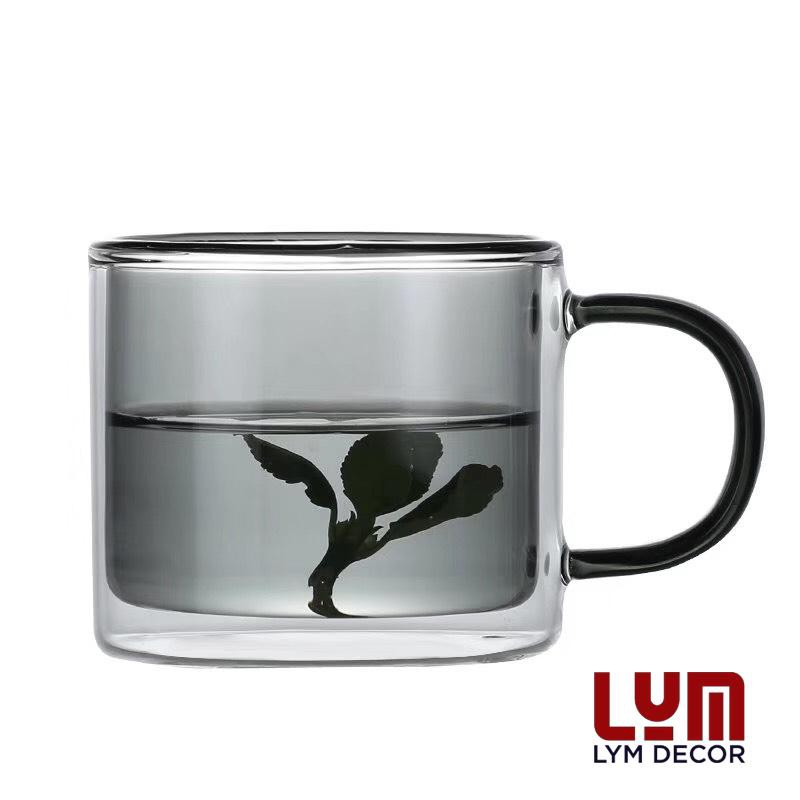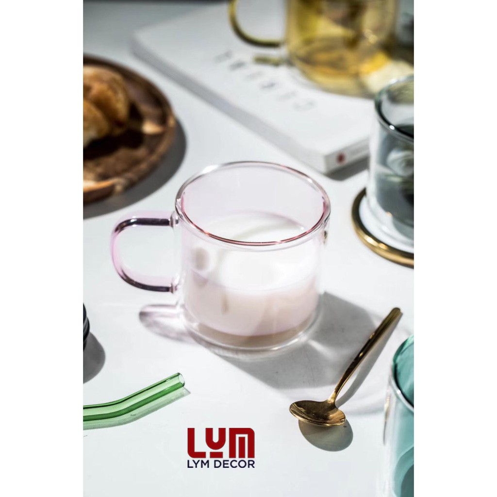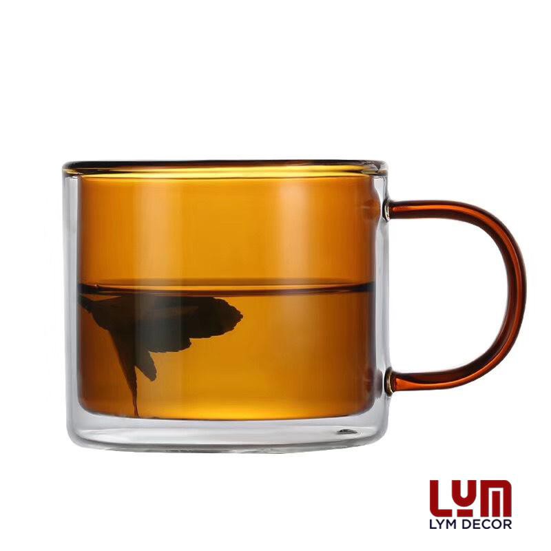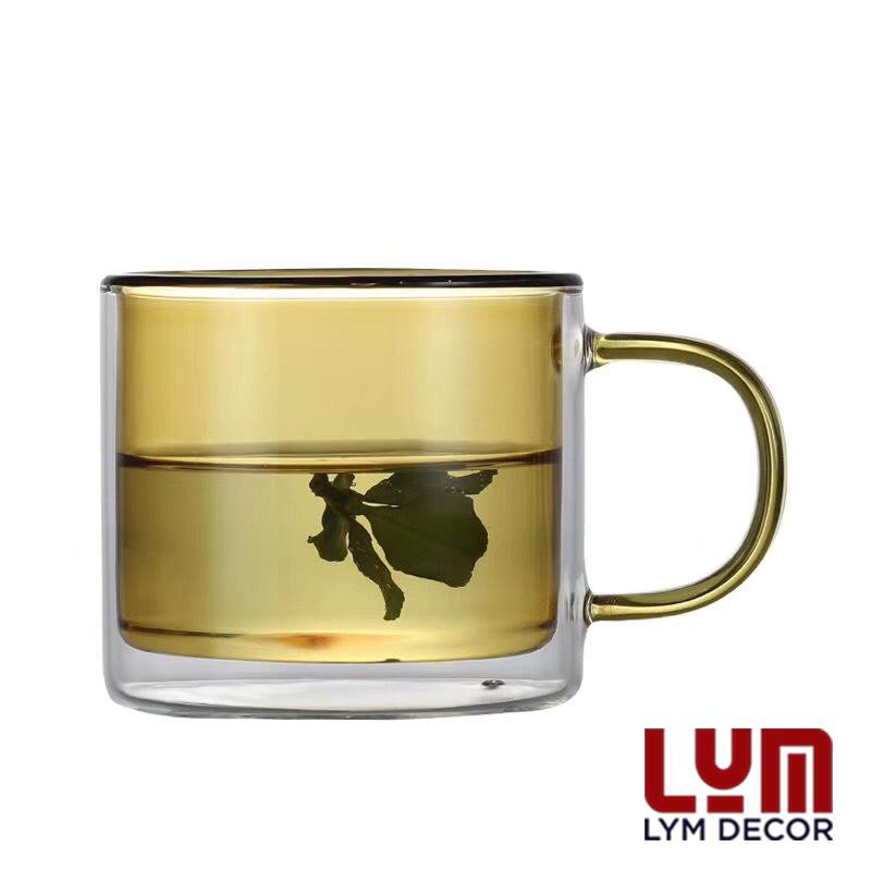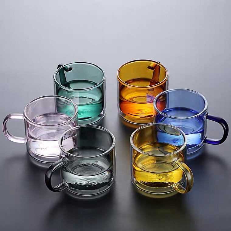 (SẴN) Cốc 2 lớp 2 màu 300ml - Cốc thủy tinh chịu nhiệt cao cấp không chì