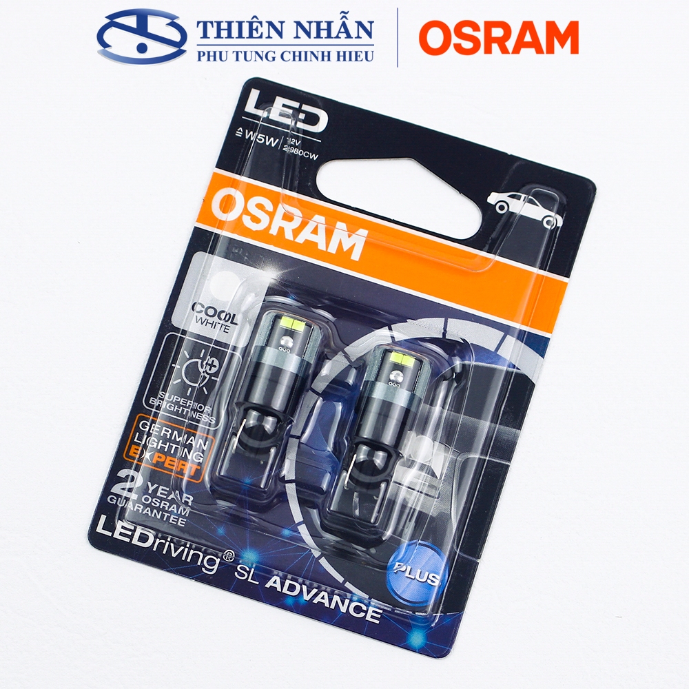 Bóng đèn led Osram T10 sương mù, tín hiệu, demi, định vị, lùi, biển số, nội thất,.. sáng trắng 2980CW 1.5W 120LM