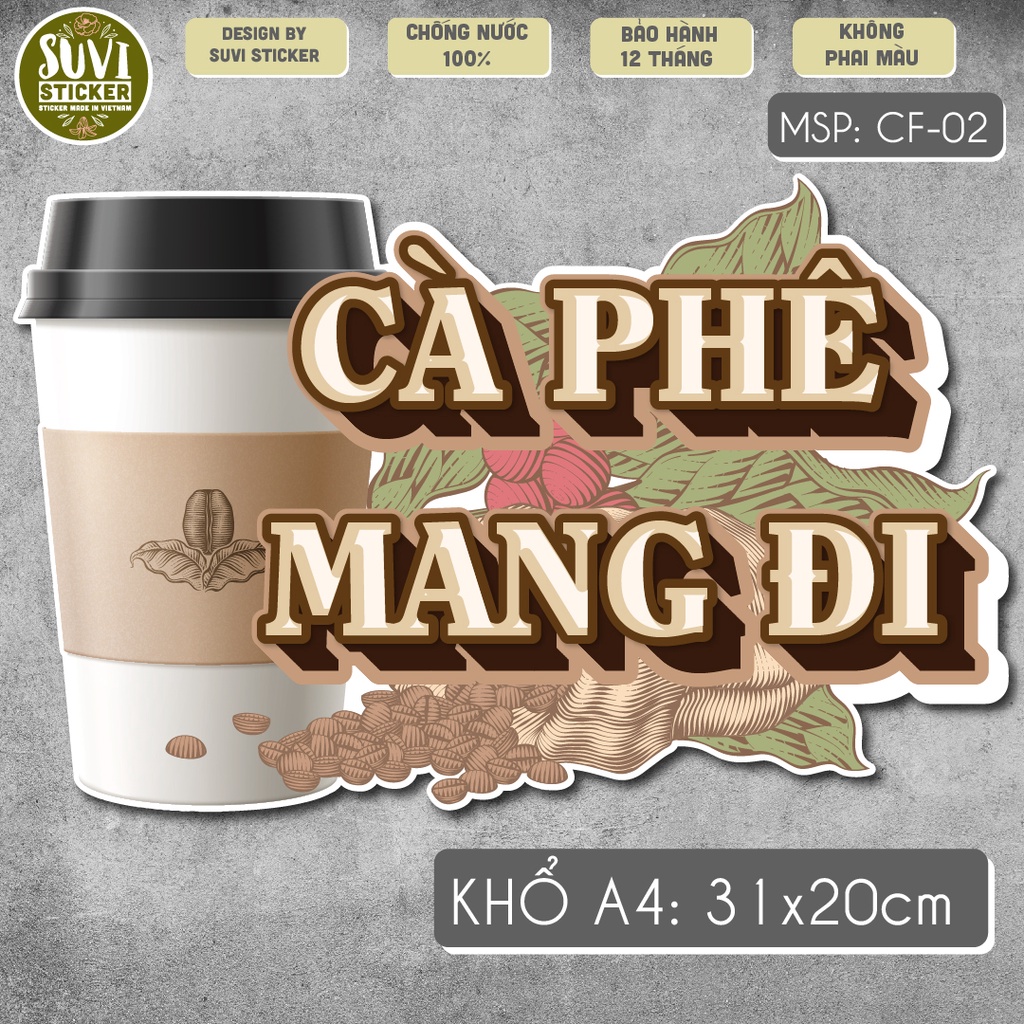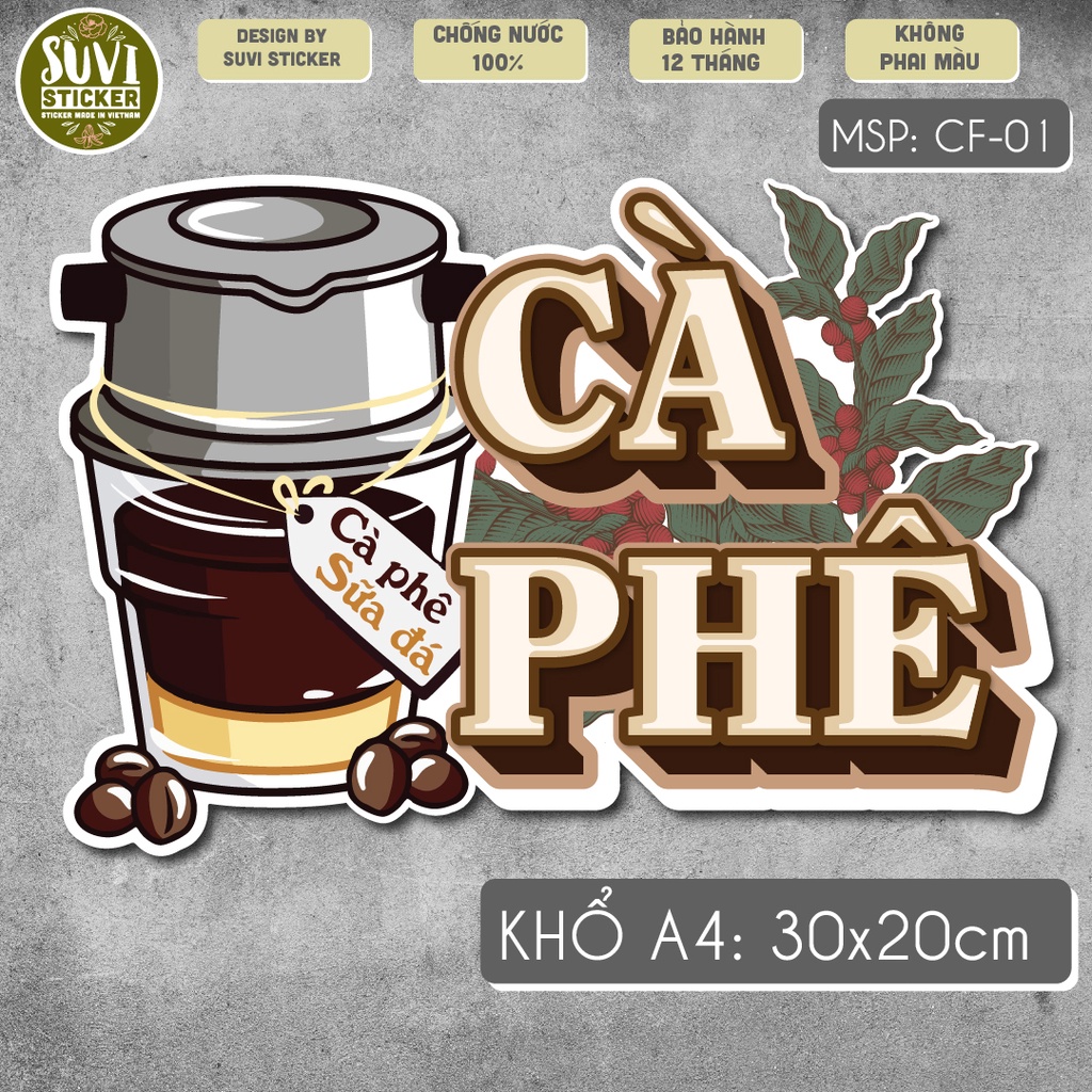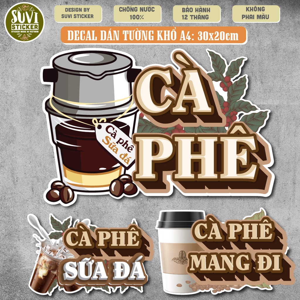 Decal Coffee khổ lớn trang trí tường, dán kính, trang trí quán cà phê khổ A5, A4 chống nước. MSP: KL16