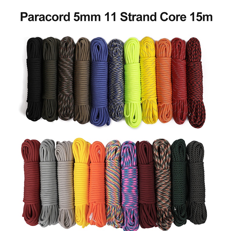 Dây paracord 5mm 15m, lõi 11 sợi, tiện lợi cho cắm trại và đi bộ đường dài
