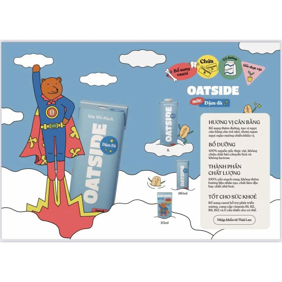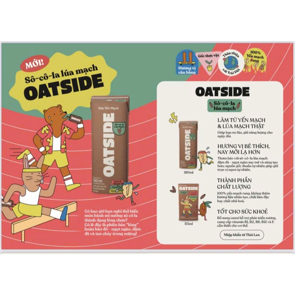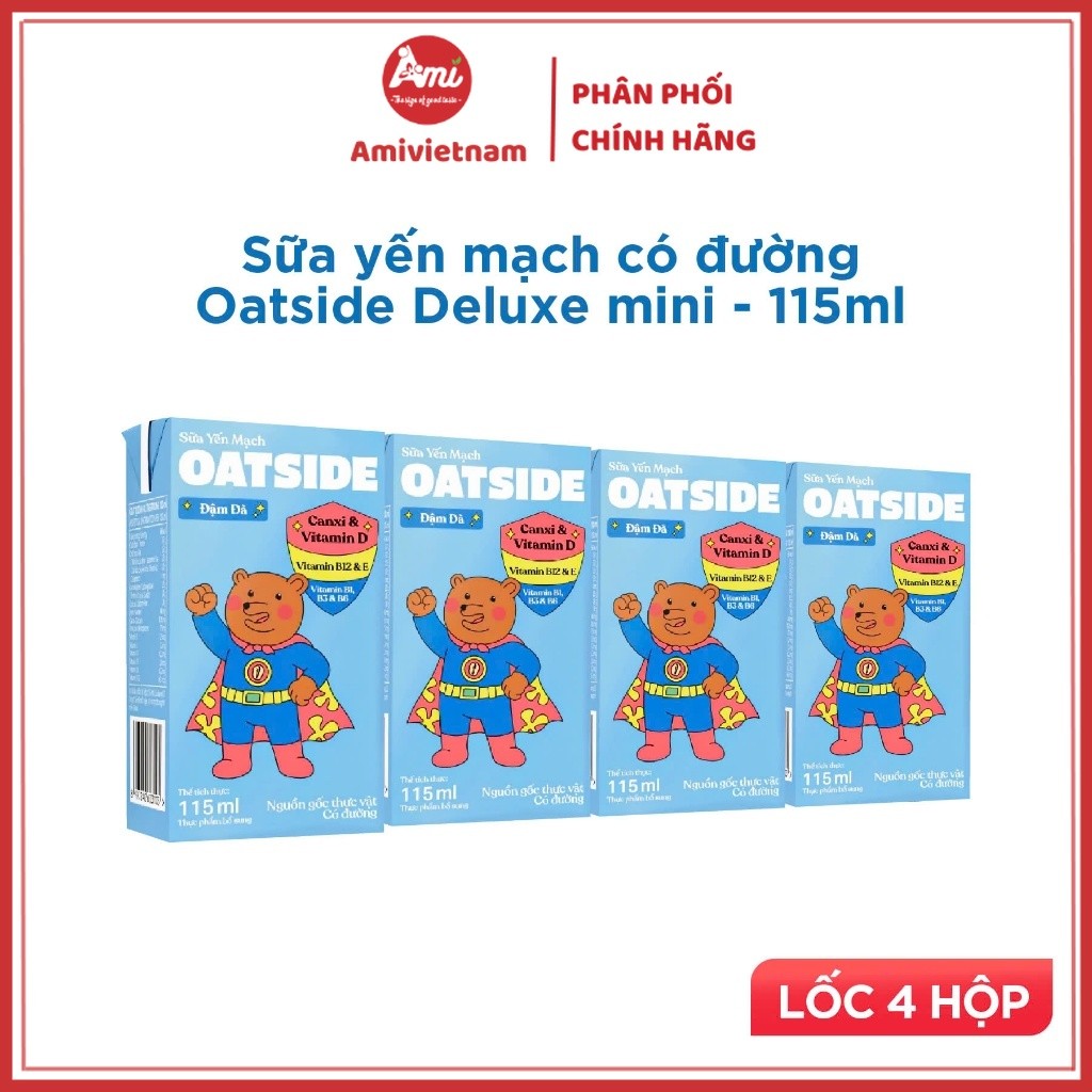 Sữa Yến Mạch OATSIDE Milk Nguyên Vị & Chocolate có loại mới có đường Deluxe lốc 4 Hộp 115ml