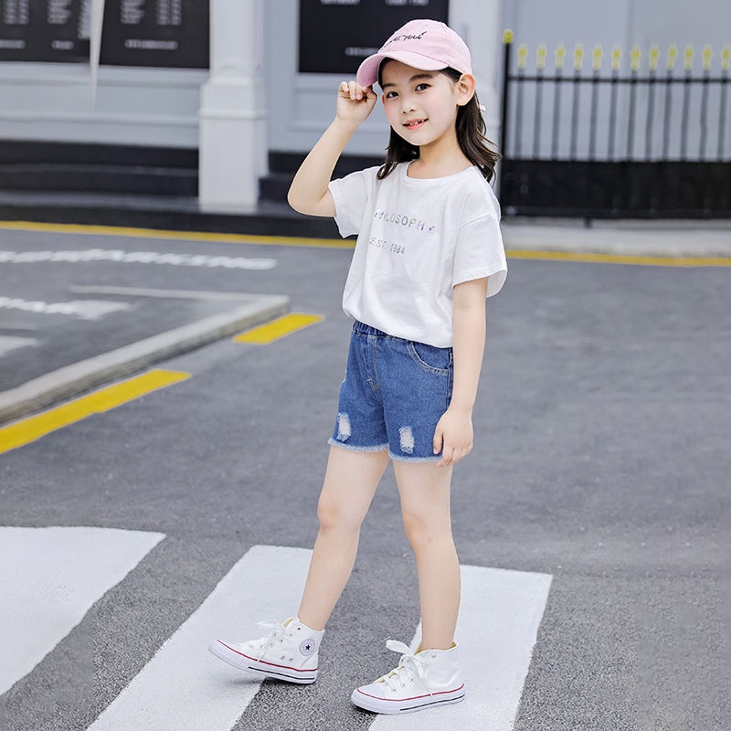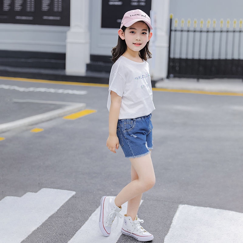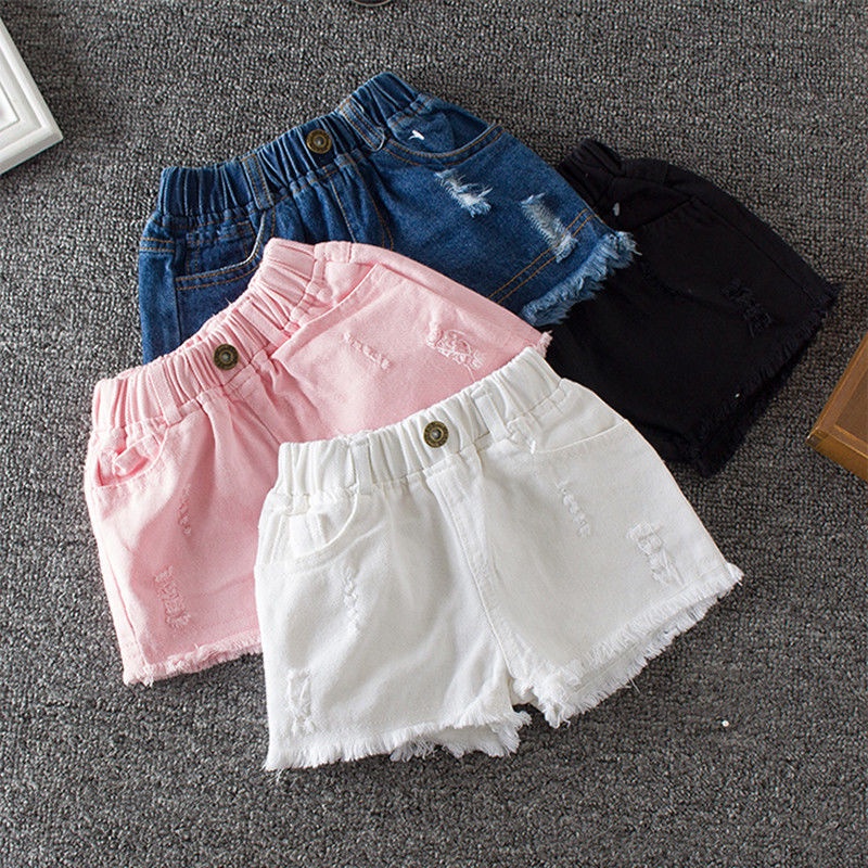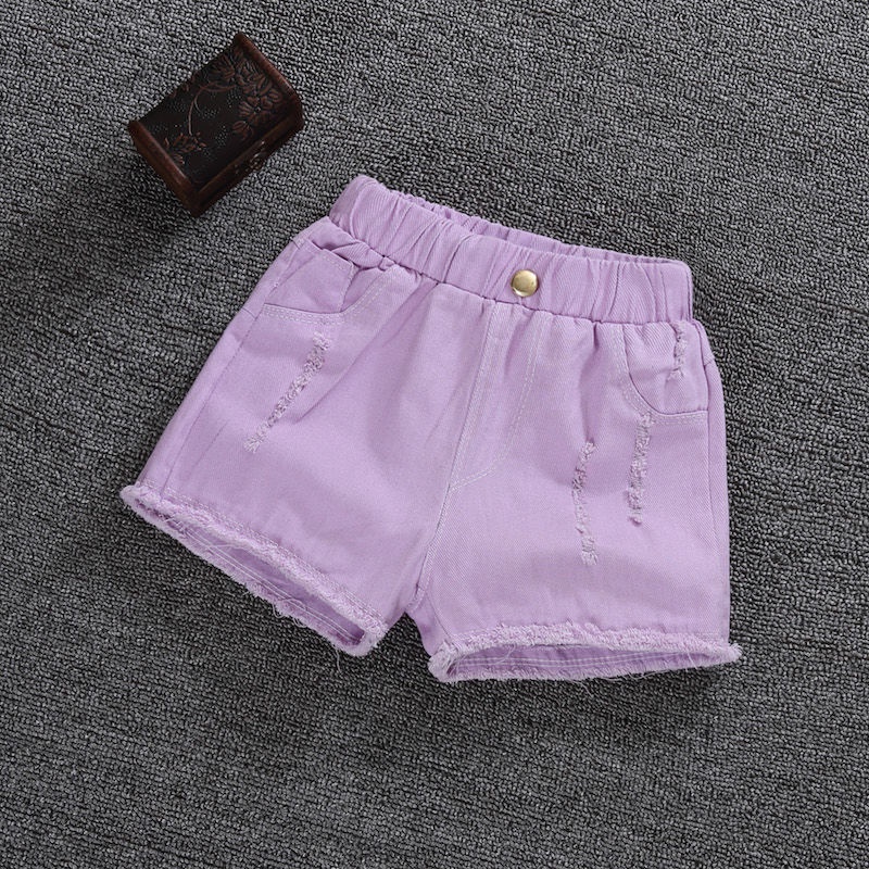 Quần Short denim Màu Trơn Co Giãn Thời Trang Mùa Hè Mới Cho Bé Gái 3-10 Tuổi