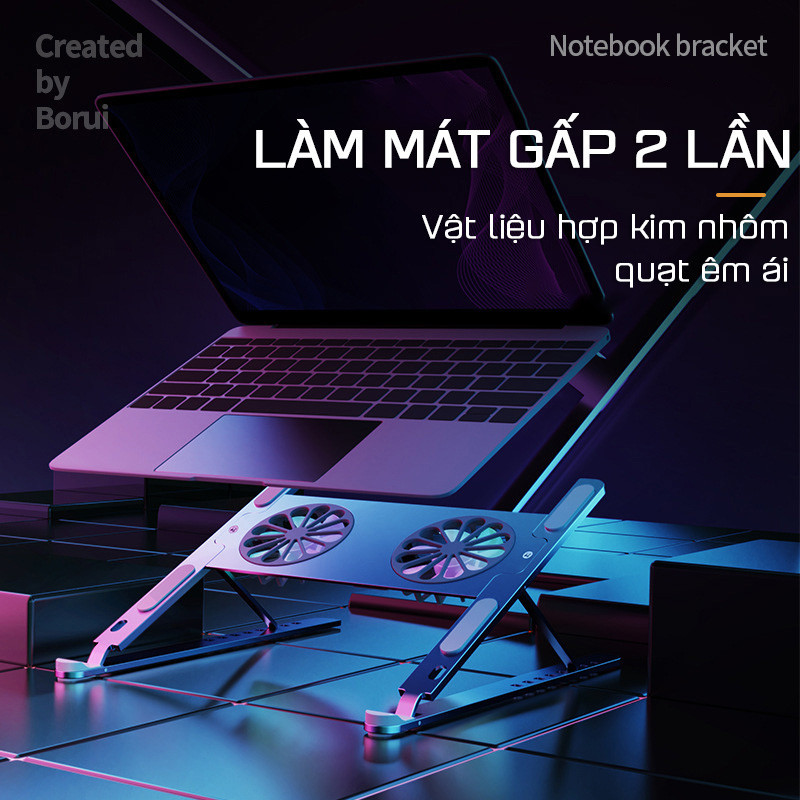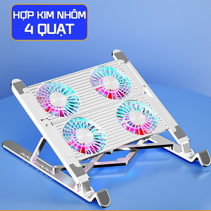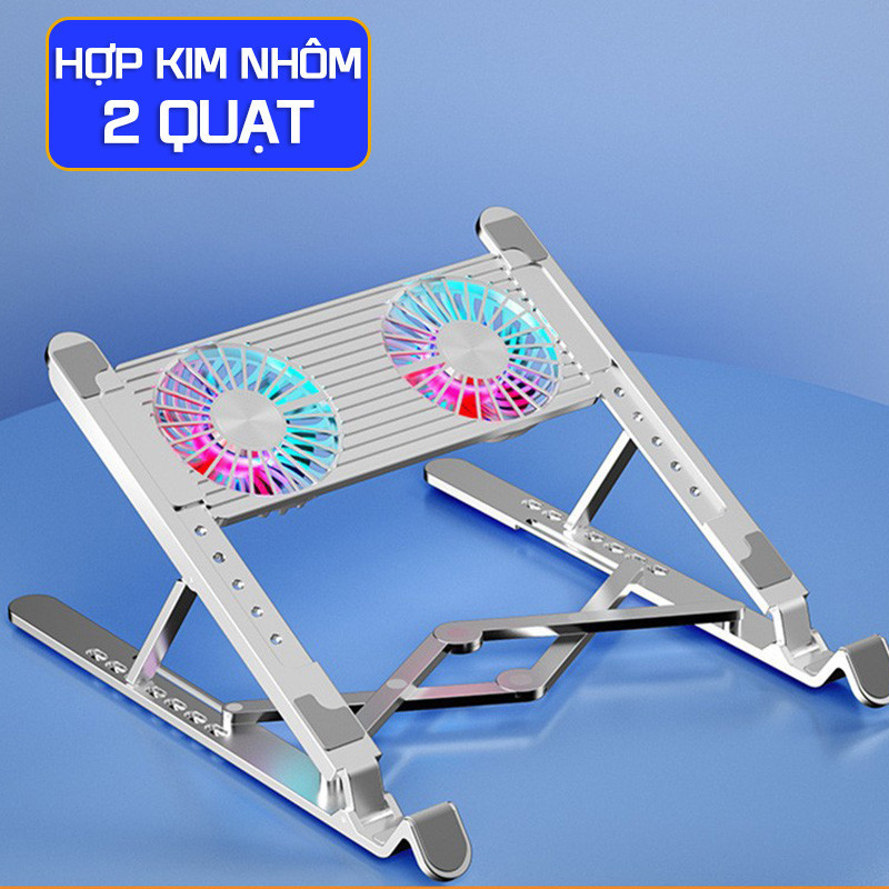 Giá Đỡ Laptop Hợp Kim Nhôm Loại 2 Quạt 4 Quạt Có Quạt Tản Nhiệt LED RGB 8 Mức Chỉnh Độ Cao Cho Laptop