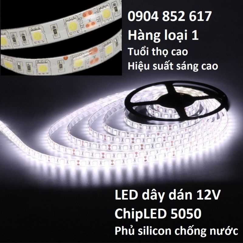 Dây led dán 5050 điện 12V cuộn dài 5m ánh sáng trắng