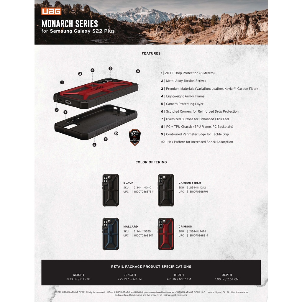 (THANH LÝ) Ốp lưng UAG Monarch cho Samsung Galaxy S22 Plus/S22 Plus 5G [6.6-inch]
