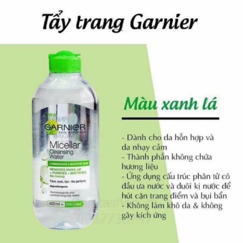 Tẩy trang garnier 400ml xanh lá / xanh dương