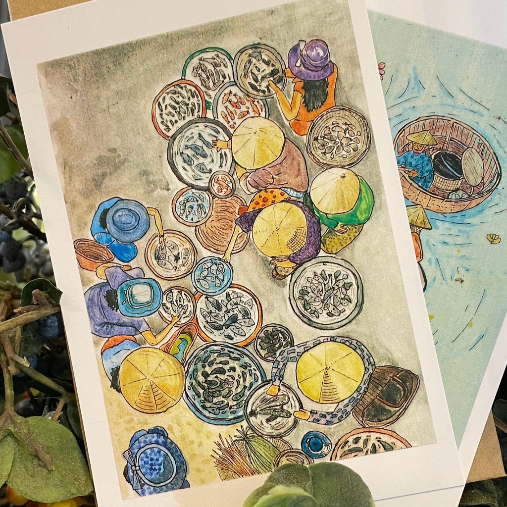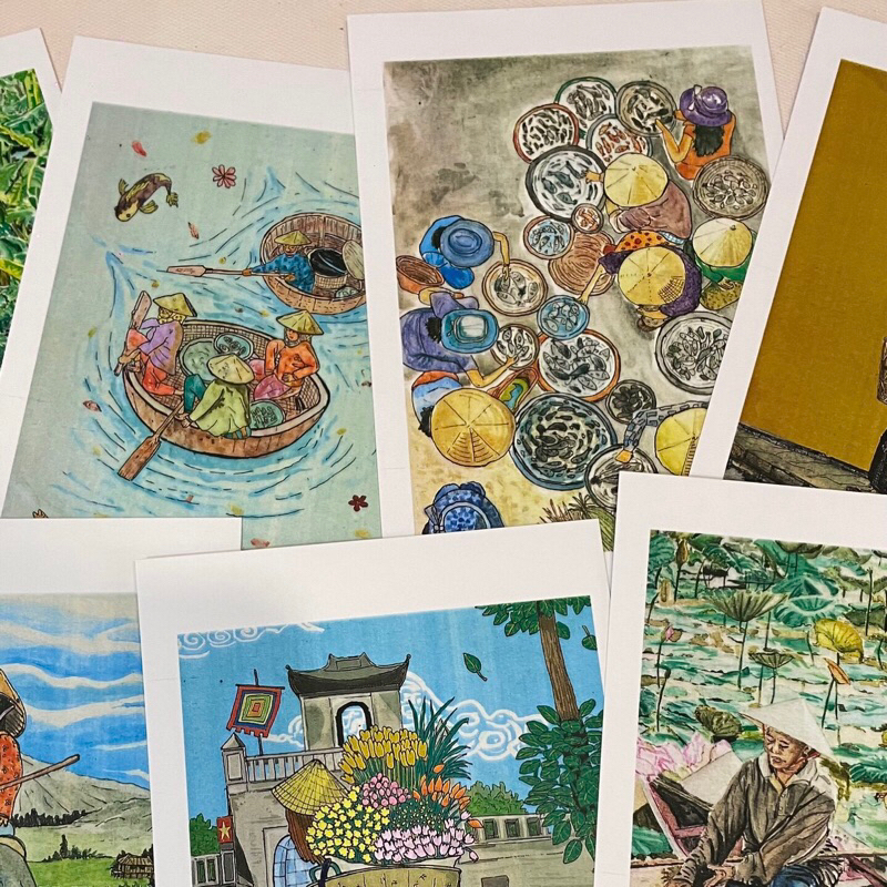 Bộ 10 Postcard 10x15cm Artwork Việt Nam, Bưu thiếp, Quà tặng, In giấy mỹ thuật, Tặng kèm bao thư