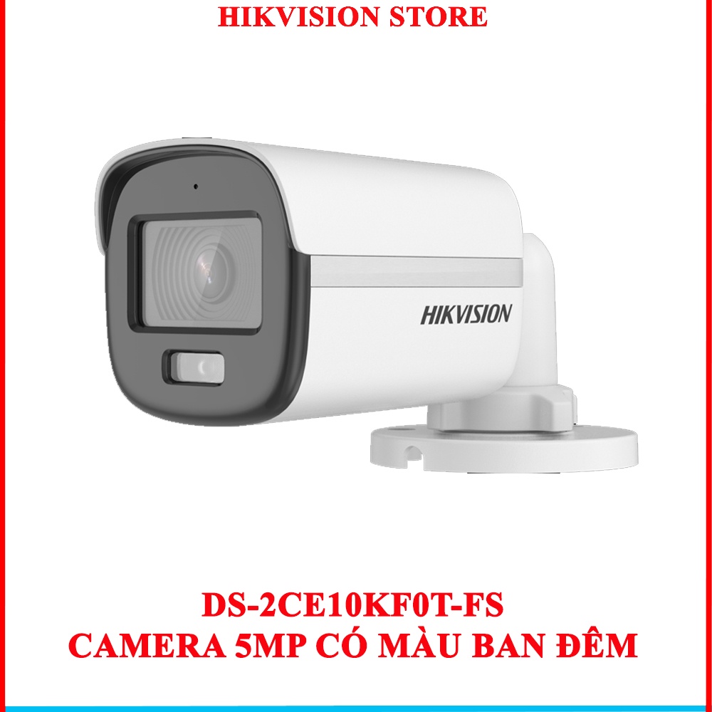 Camera HIKVISION 5MP/3K Có Màu Ban Đêm DS-2CE10KF0T-FS đèn trợ sáng 20m tích hợp mic vỏ kim loại