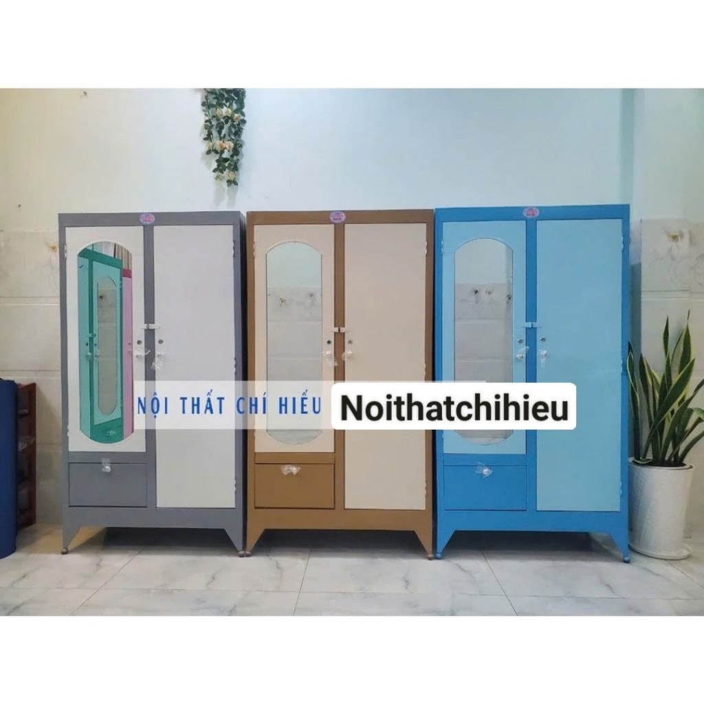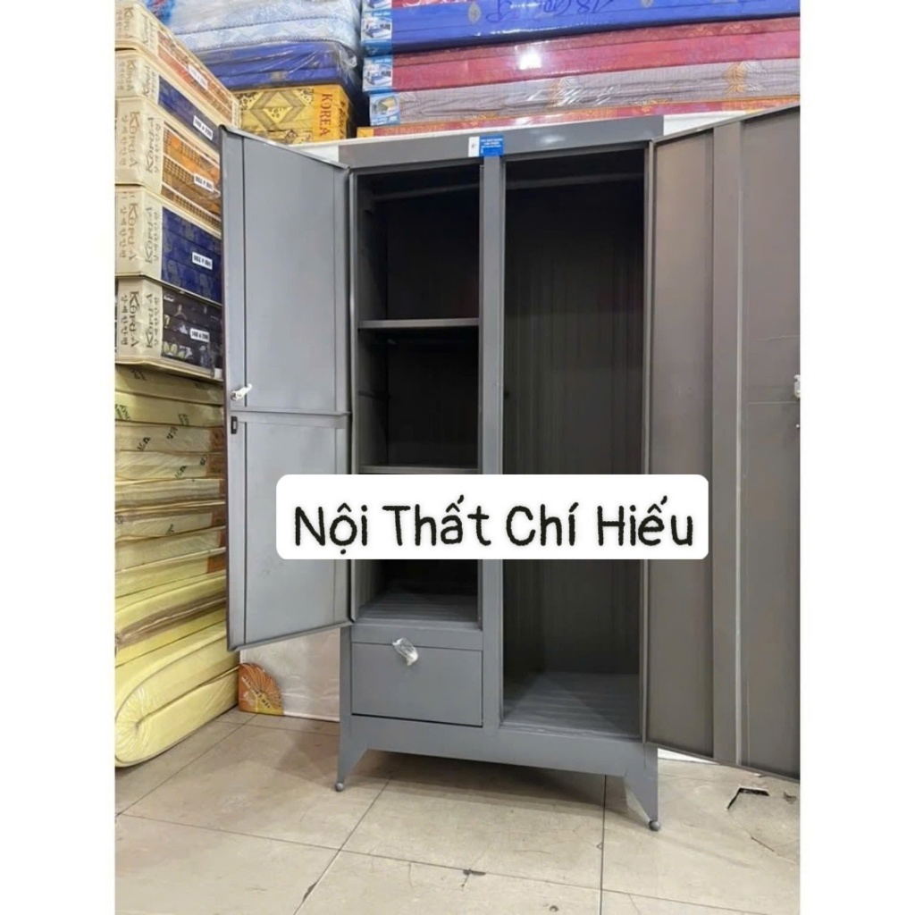 Tủ sắt cao 1m6x2, tủ sắt quần áo màu xám trắng tiện dụng cho sinh viên, tủ nhỏ gọn dễ di chuyển MS31