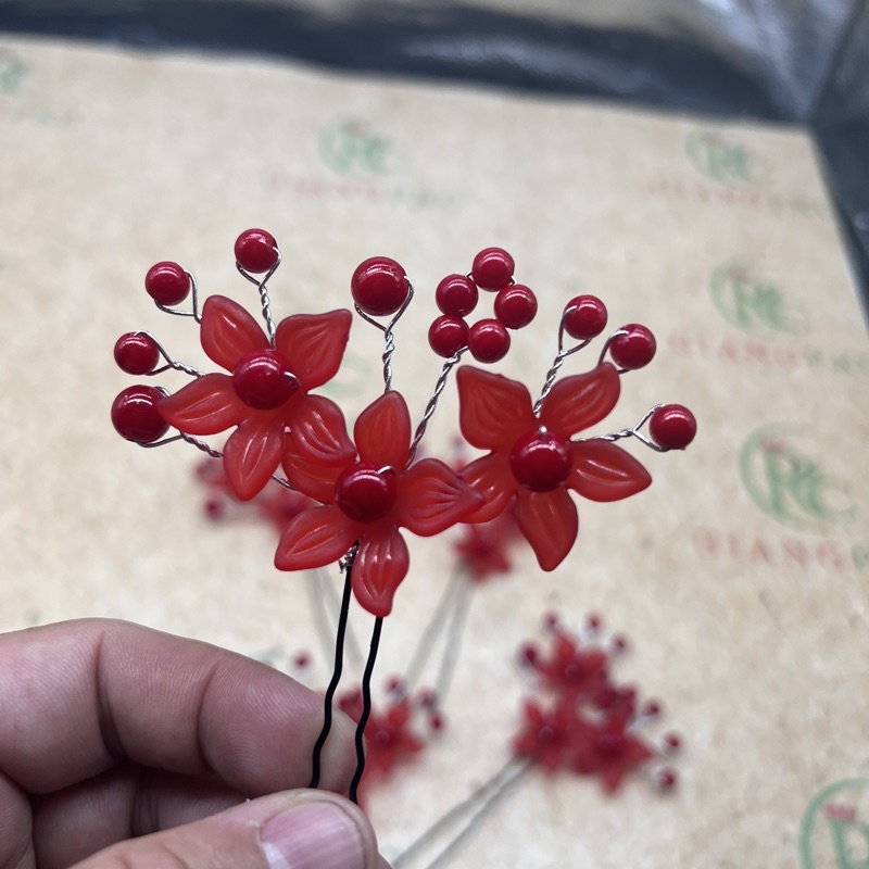 Trâm hoa hạt trai nhựa cài tóc cô dâu - Trâm cài tóc