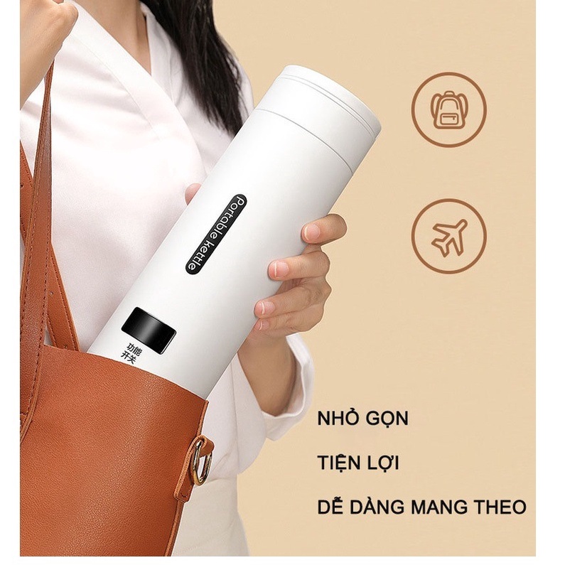 Bình đựng nước nóng điện tử mini tự động an toàn cho văn phòng/mang đi du lịch bình nước bệnh viện đa năng 500ml tự ngắt