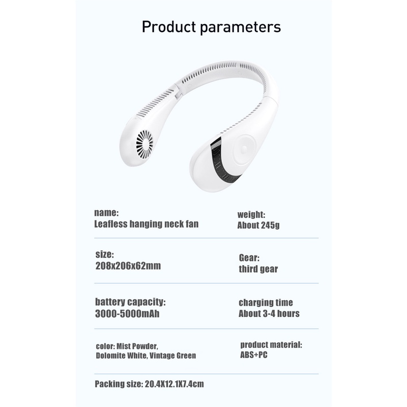 Quạt Đeo Cổ Mini Không Cánh Xoay 360 Độ Sạc USB Tiện Dụng