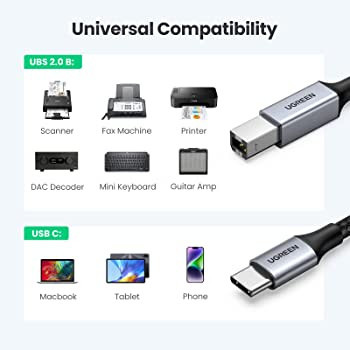 Ugreen 80805 80807 80808 Cáp USB Type C to USB B máy in Chính Hãng US370,đầu Nhôm dây bọc dù