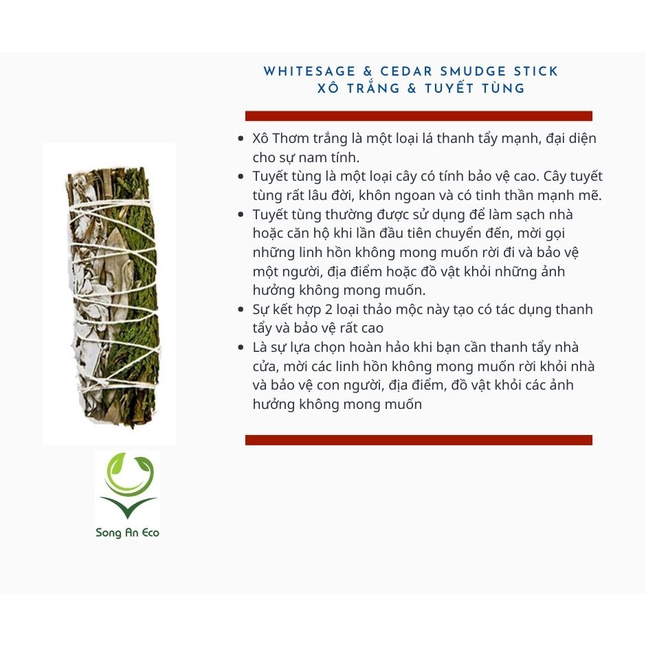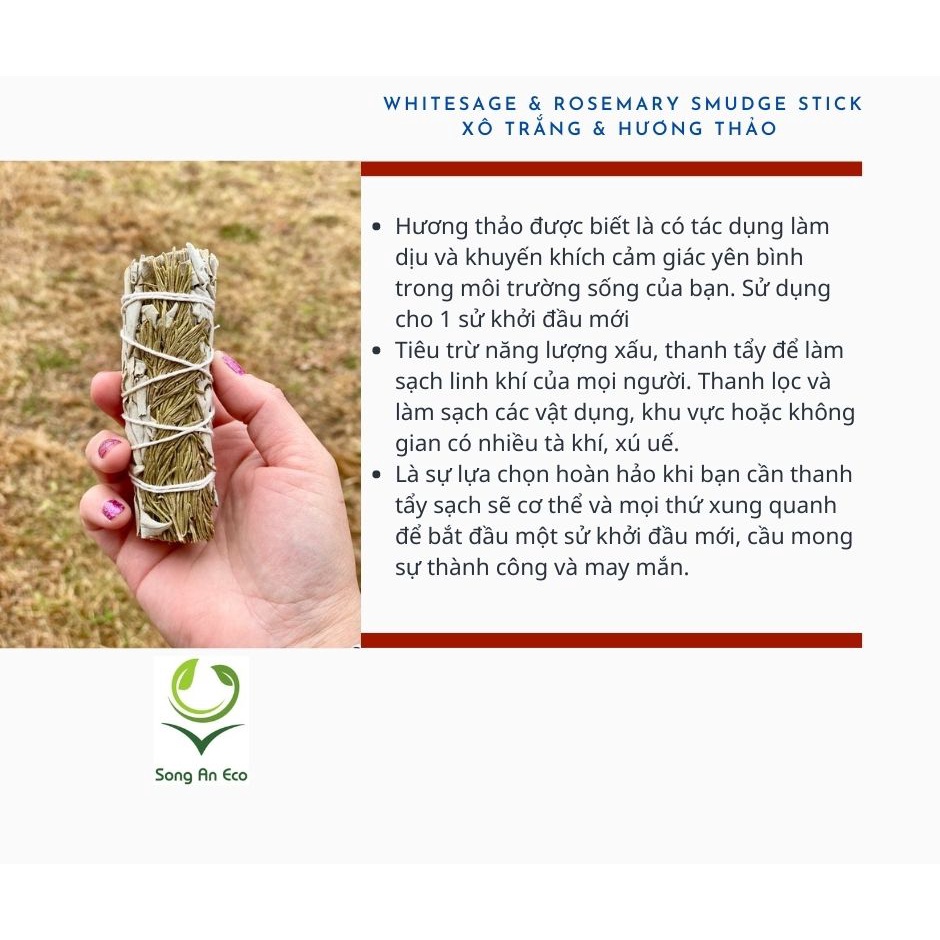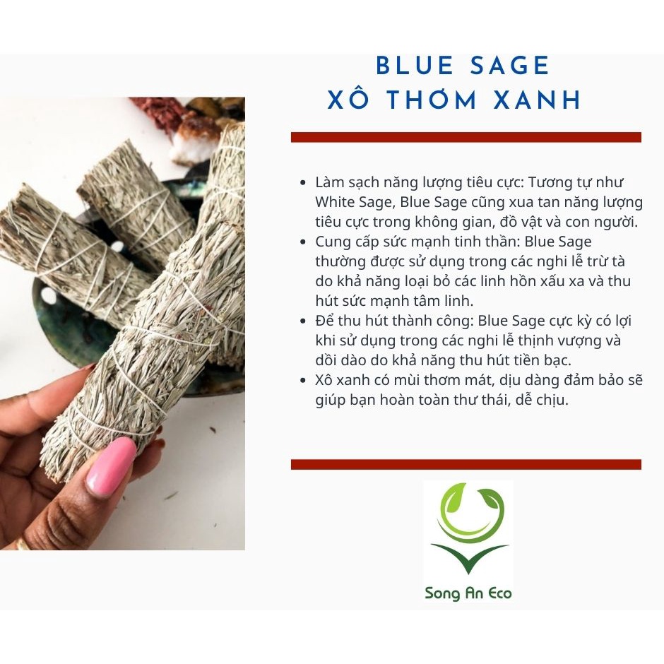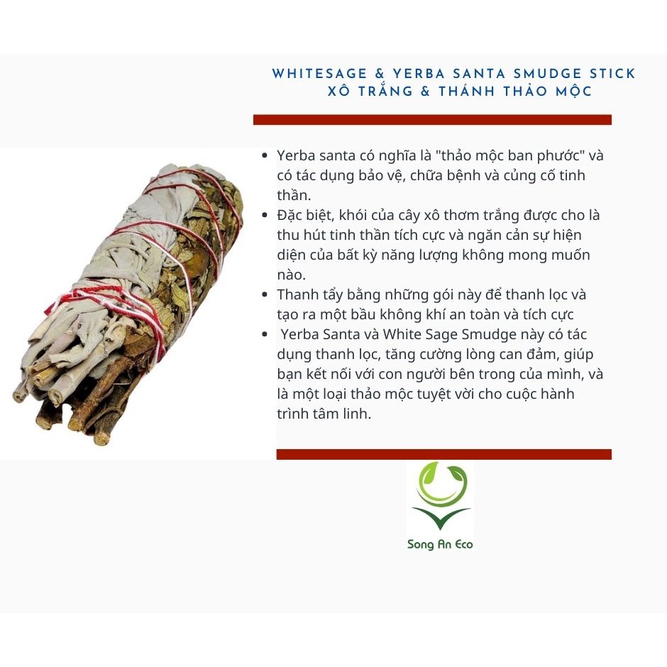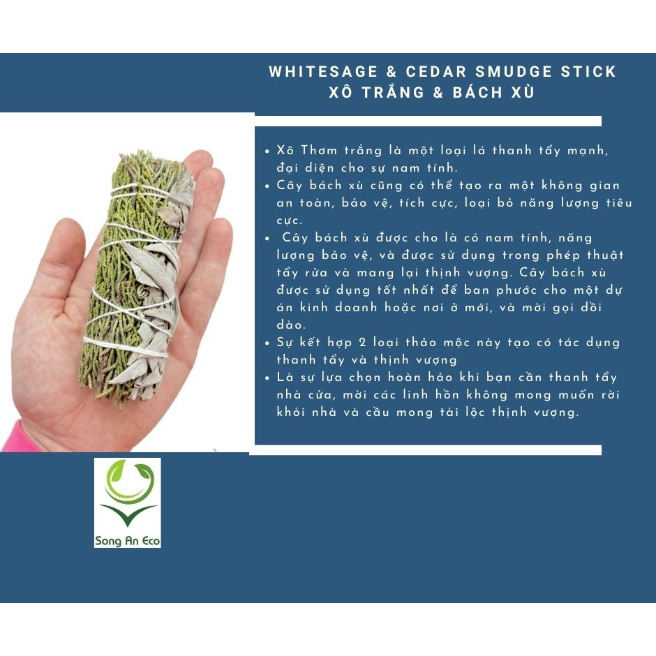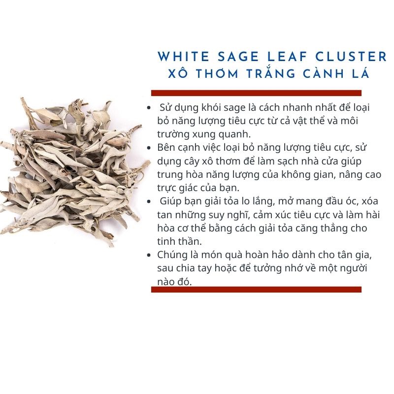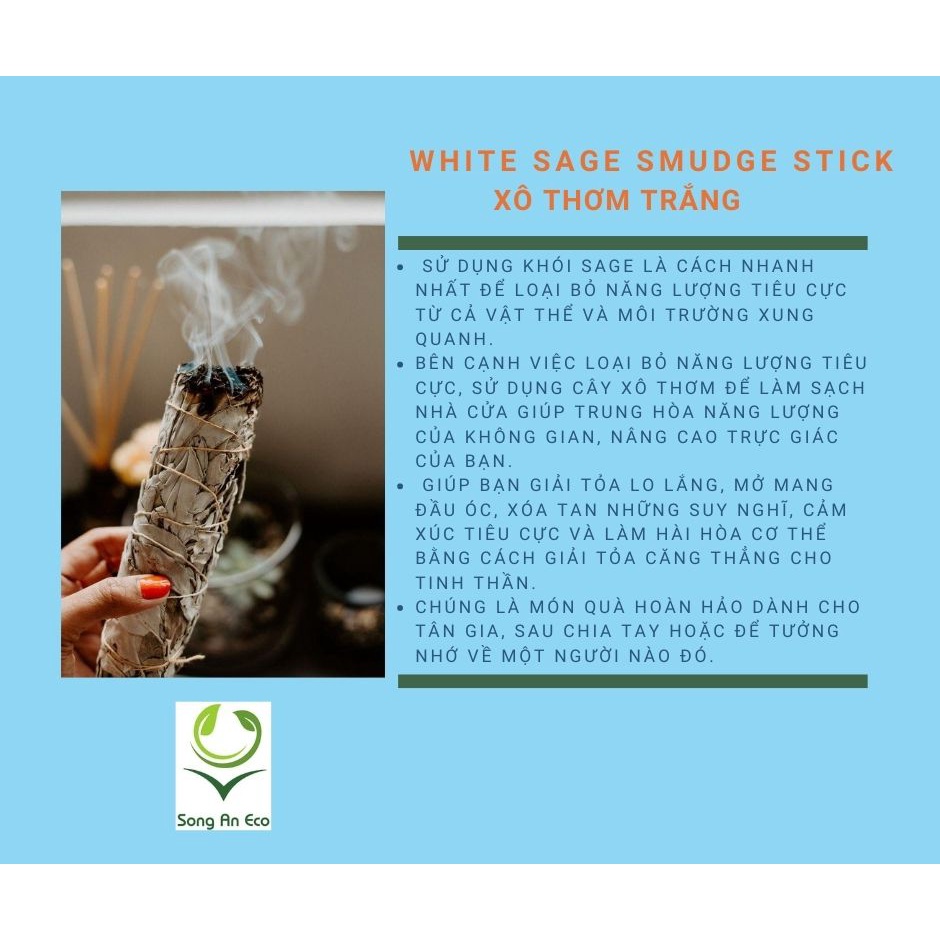 Lá xô thơm trắng white sage xông nhà thư giãn tinh thần và khử trùng không gian sống (Song An Eco)