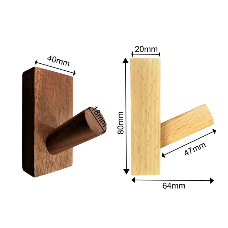 Móc gỗ treo đồ decor không cần khoan tường-Gỗ Nâu
