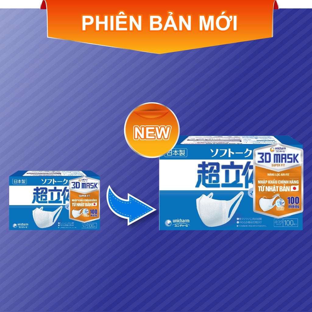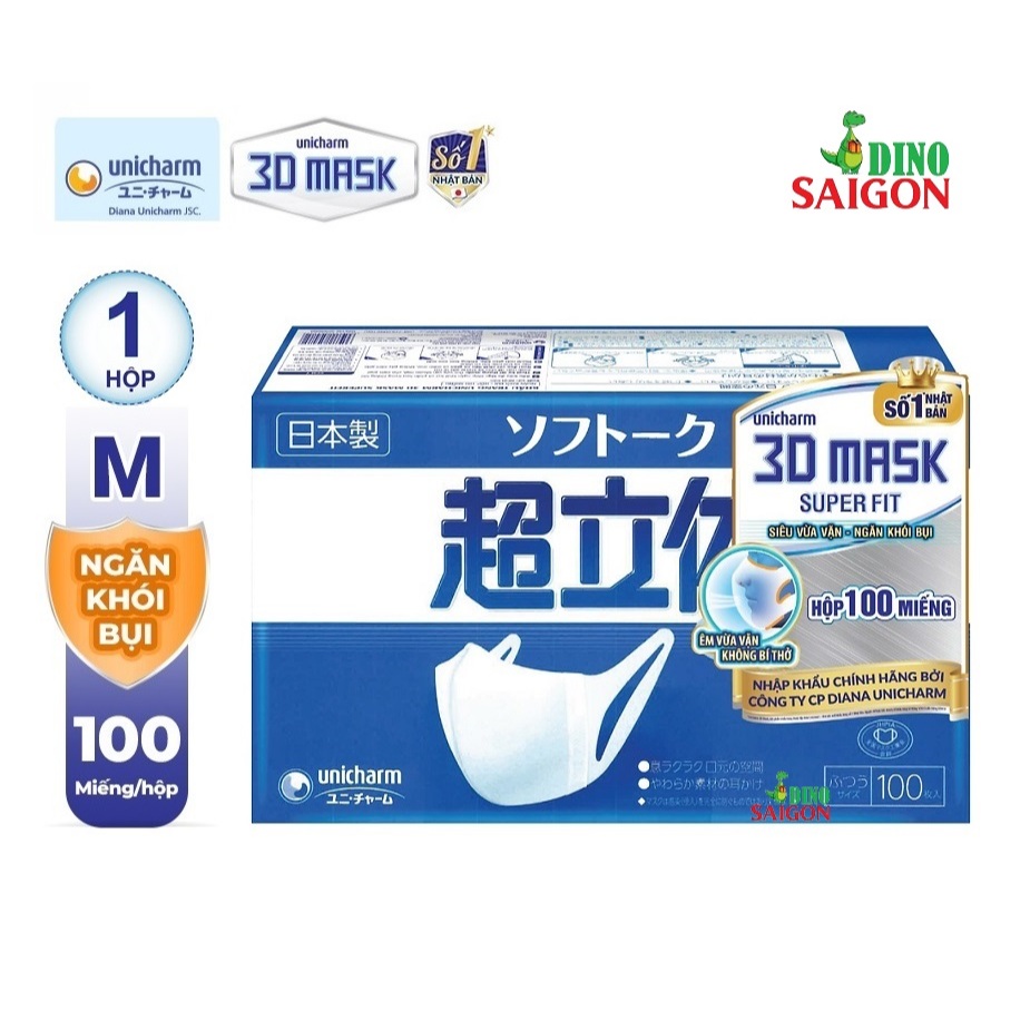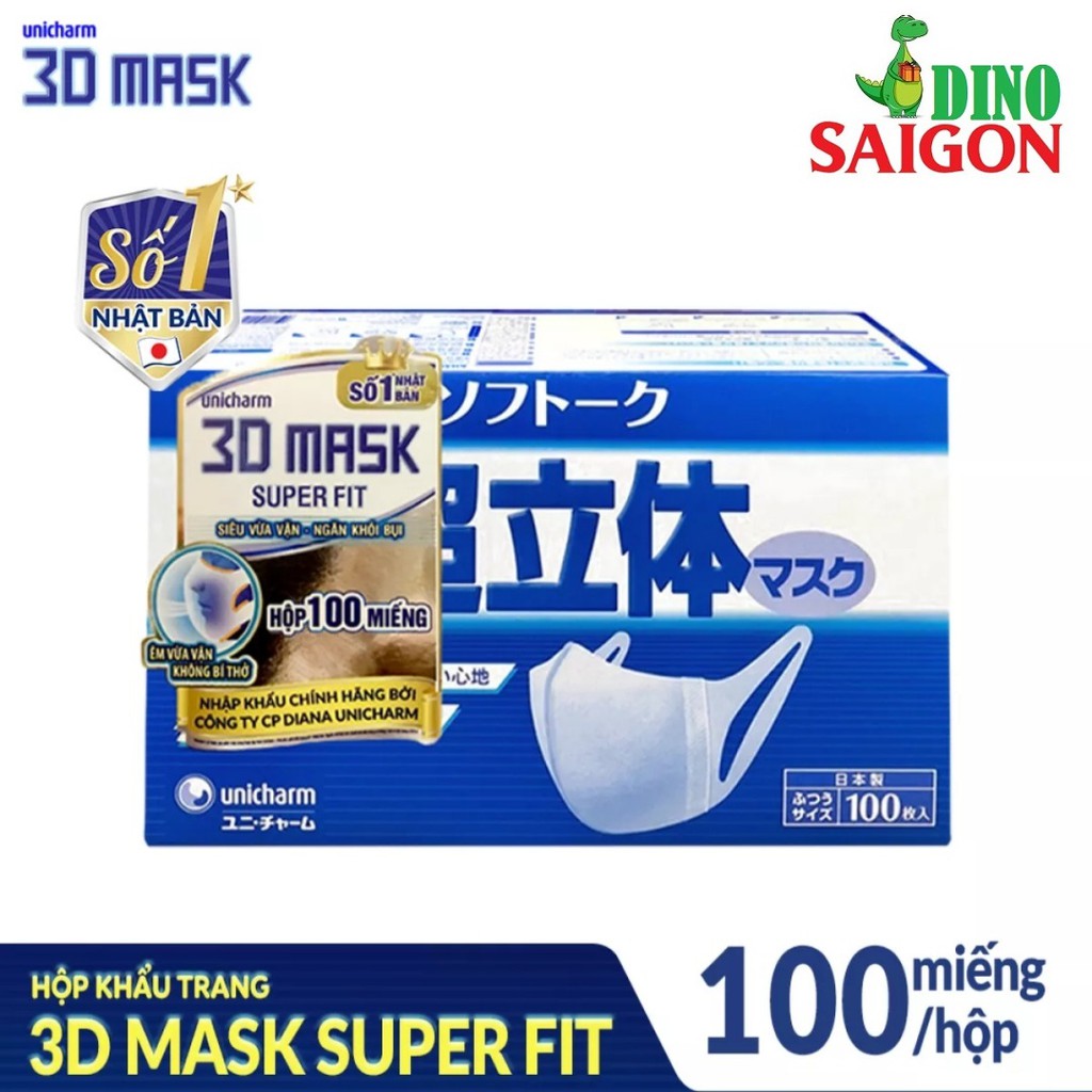 Hộp 100 cái Khẩu trang Unicharm 3D Mask super fit ngăn khói bụi