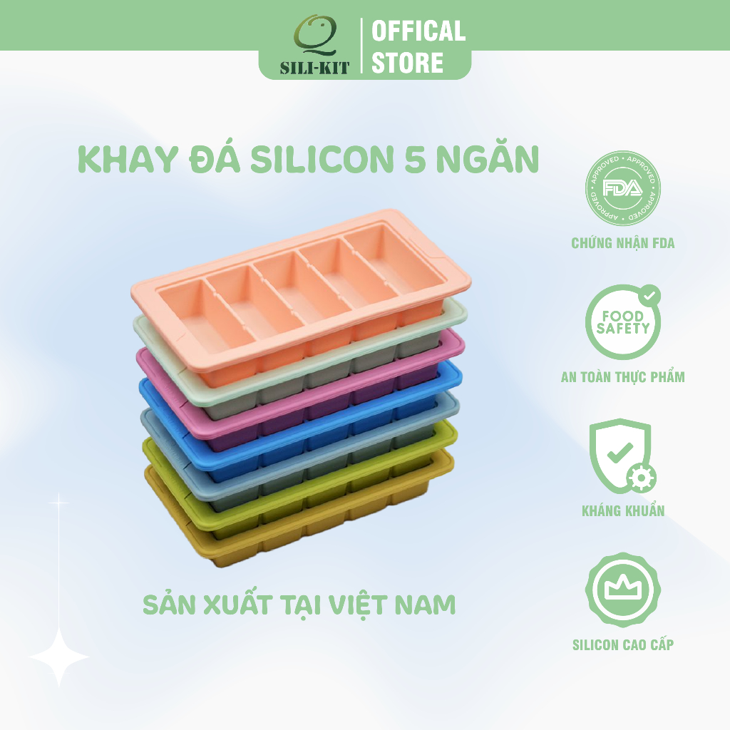 Khay làm đá silicon cao cấp 5 ngăn, khuôn làm kem, khuôn làm thạch cao cấp có độ bền cao - Silikit