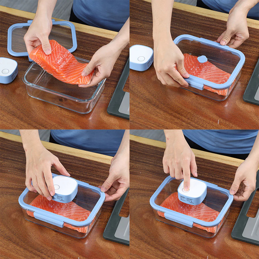 Bộ hộp thủy tinh chân không Neoflam VACU 6 món có bơm hút chân không kèm theo, dùng trong nhà bếp