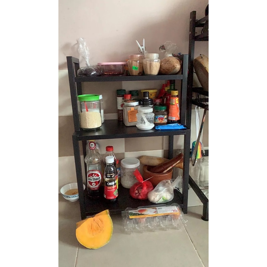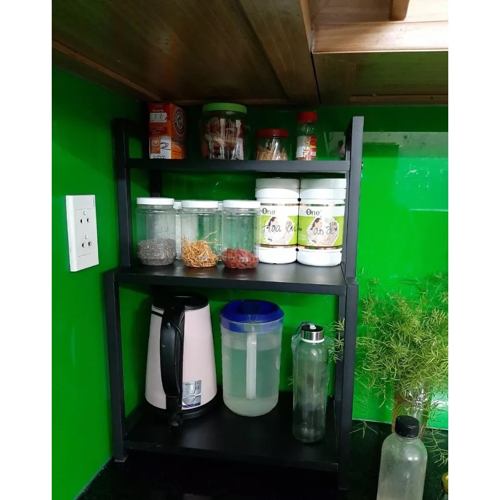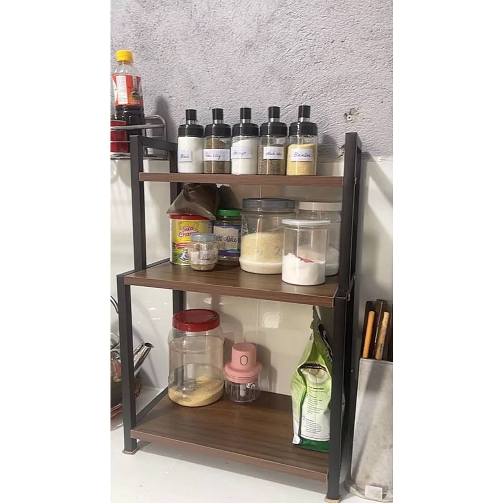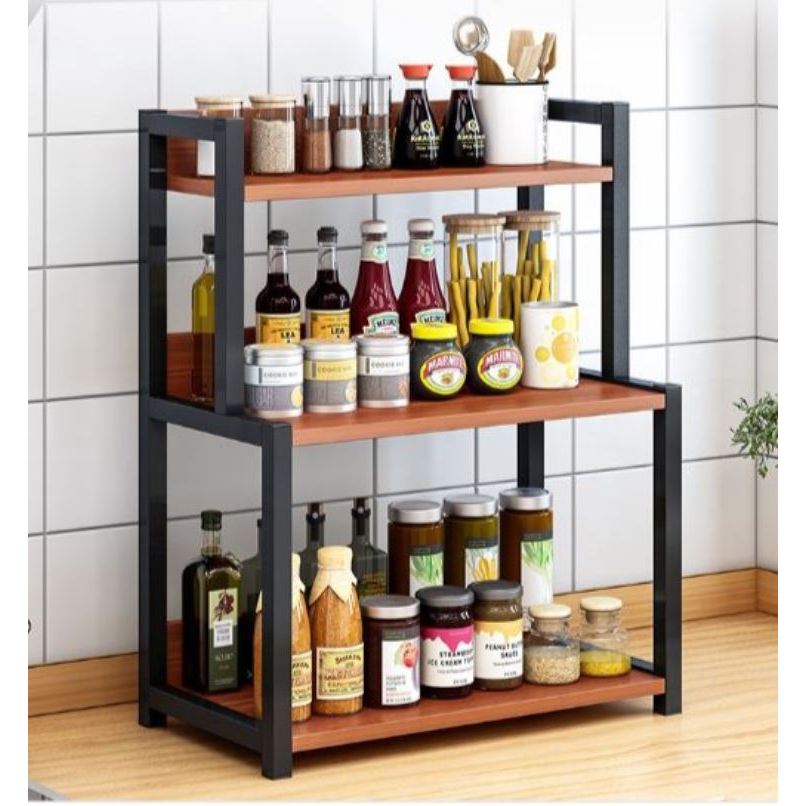 [CÓ HOẢ TỐC HCM] Kệ Gia Vị KGV3T Để Bàn Nhà Bếp Khung Sắt Sơn Tĩnh Điện,mặt gỗ loại 3 tầng