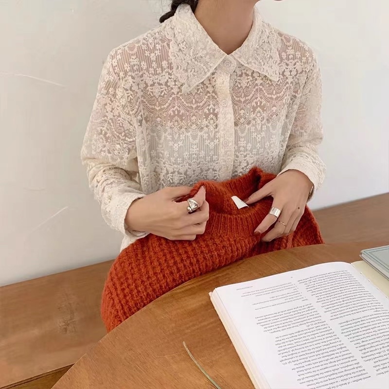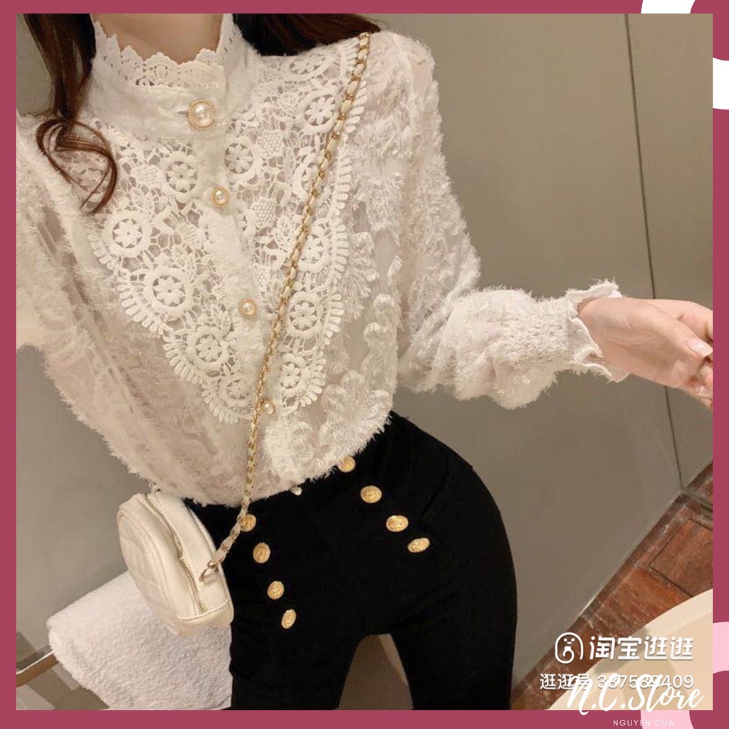 Áo Sơ Mi Nữ Ren Cúc Ngọc Cao Cấp💋được chọn❤️ free ship