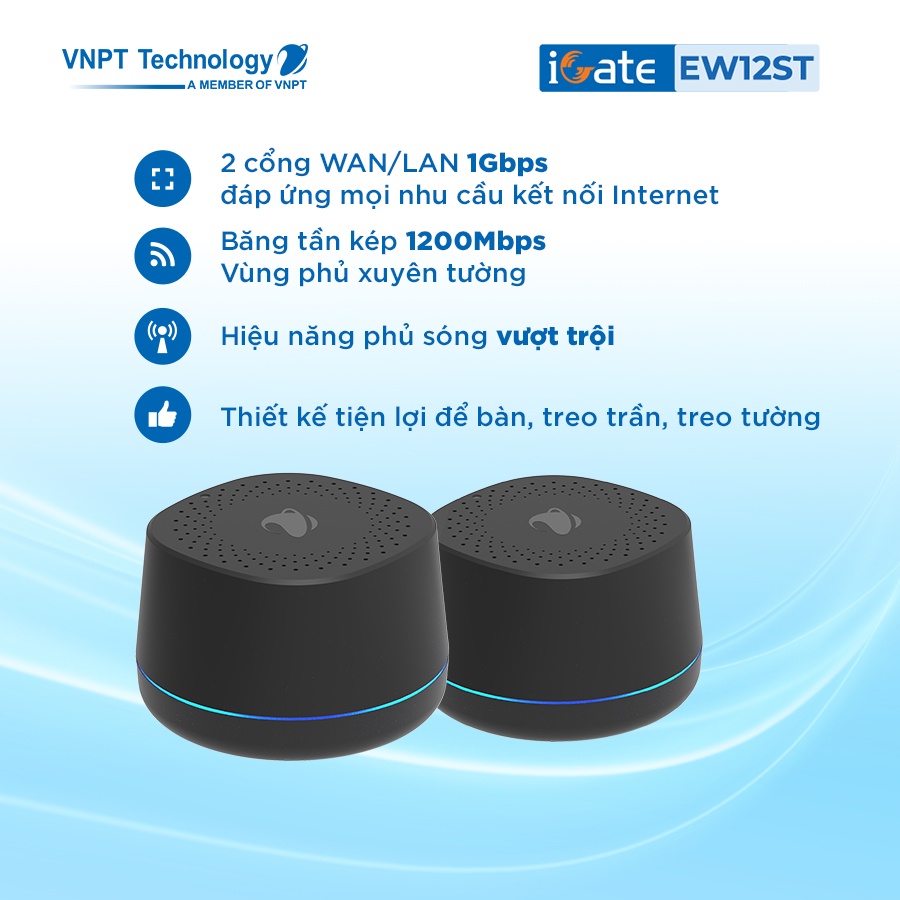 Hệ thống Wifi Mesh VNPT Technology iGate EW12ST (2-pack) 2 băng tần chuẩn AC tốc độ cao dành cho gia đình