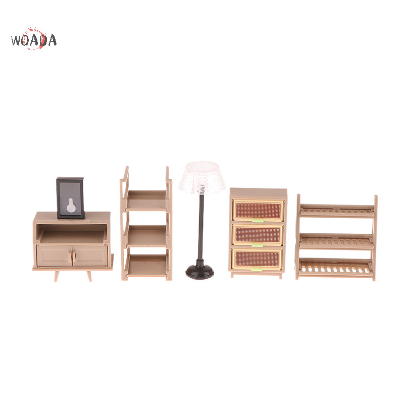 Woada 1 / 12 Nhà Búp Bê Tủ Giày Kệ Sách Đèn Sàn Đồng Hồ Treo Tường Nhà Búp Bê Nội Thất Phòng Khách Trang Trí Búp Bê Phụ Kiện Nhà VN