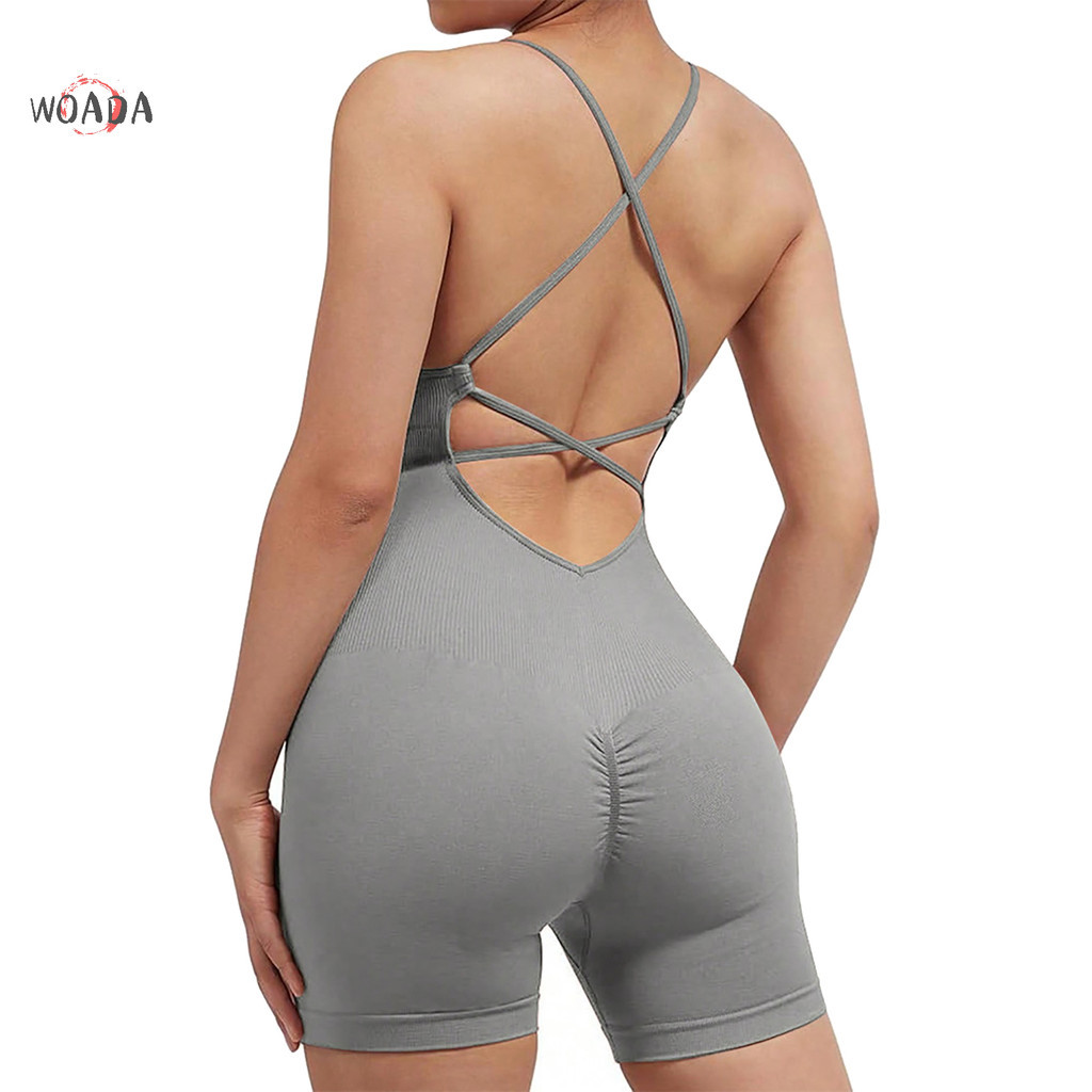 Woada Nữ Dây Đeo Áo Liền Mạch Áo liền quần Điều Khiển Bụng Đệm Một Mảnh Áo Ngực Thể Thao Gân Nhanh Khô Thể Dục Áo VN