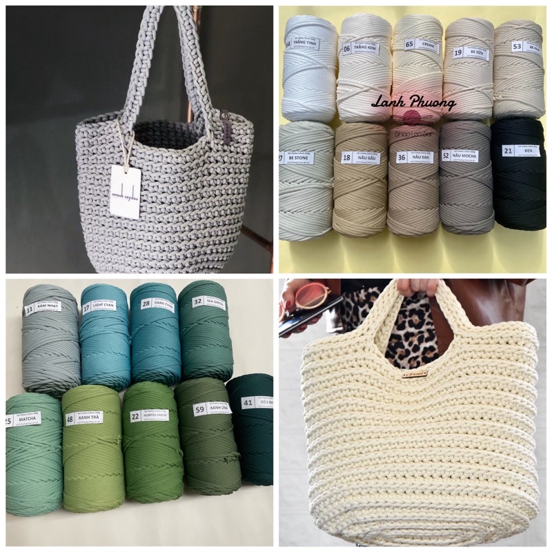 Sợi Chainy Cotton 300gr, Sợi To Đan Móc Túi Xách (bảng 1)