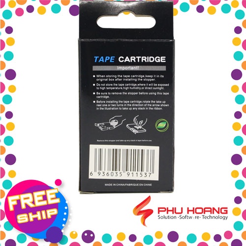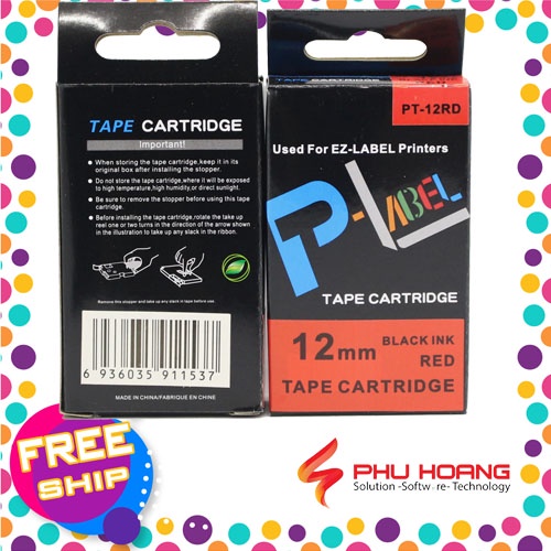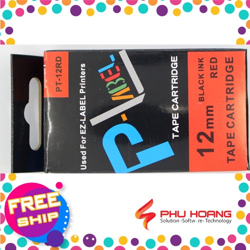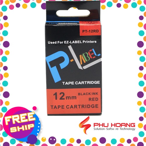 Nhãn in Casio PT-12RD ( tương thích XR-12YW1), chữ đen nền đỏ, khổ rộng 12mm*8m, Phu Hoang Company