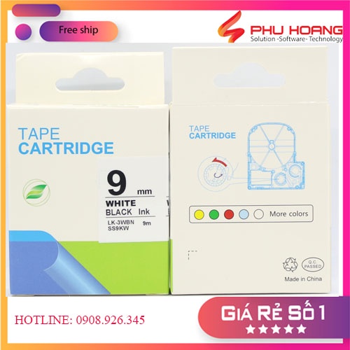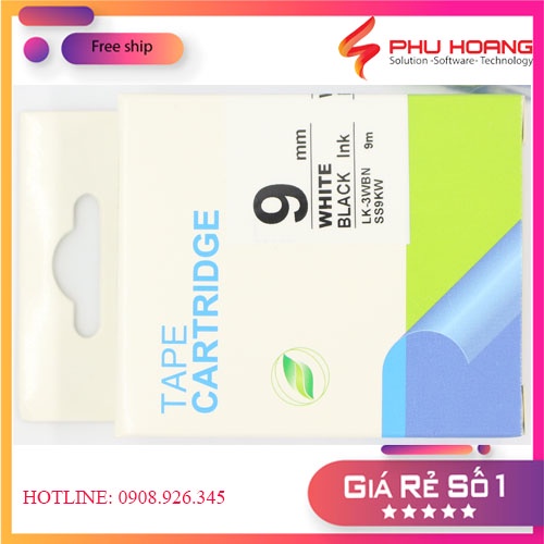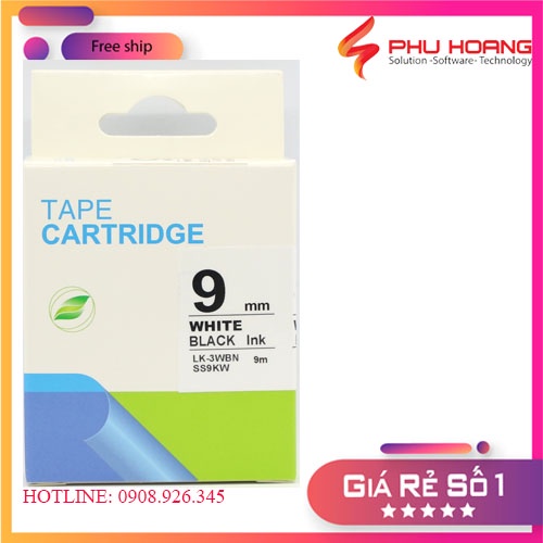 Băng mực in nhãn SS9KW/LK-3WBN sử dụng cho máy in Tepra và Espon chữ đen nền trắng khổ rộng 9mm x 8m