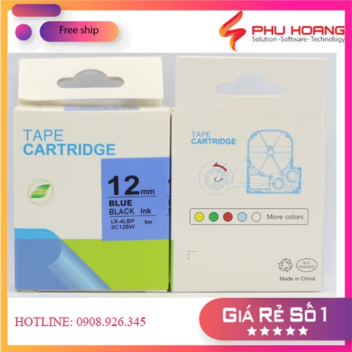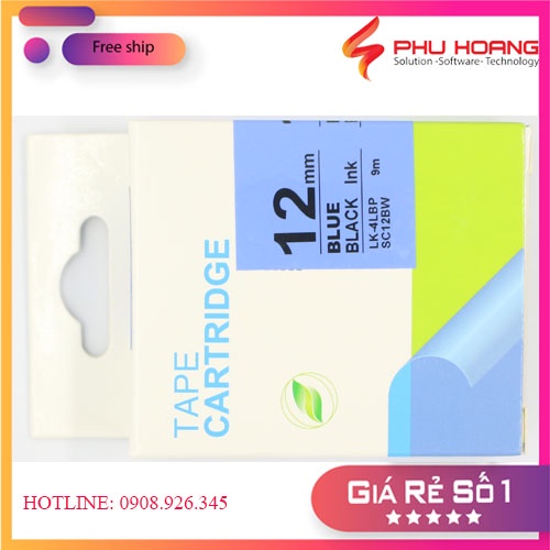 Băng mực in nhãn SC12BW/LK-4LBP sử dụng cho máy in Tepra và Espon chữ đen nền xanh dương khổ rộng 12mm.