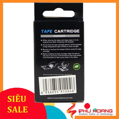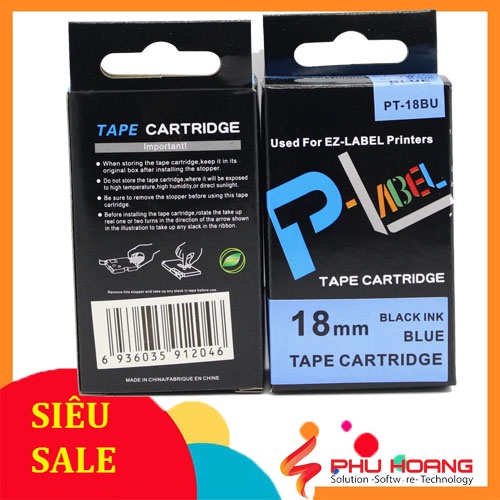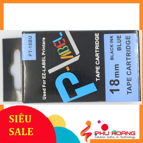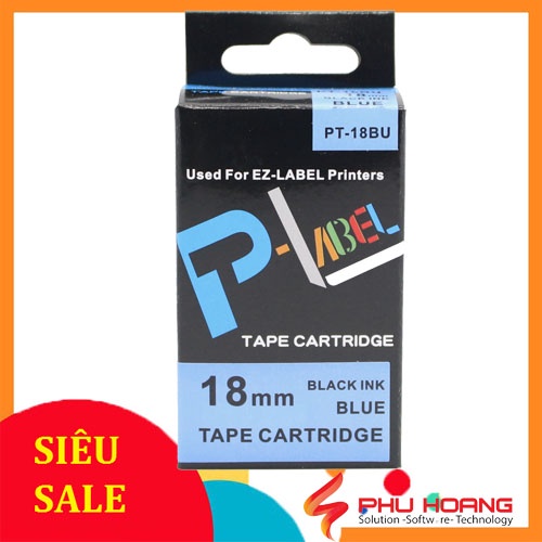 Nhãn in Casio PT-24BU, chữ đen nền xanh dương, khổ rộng 24mm