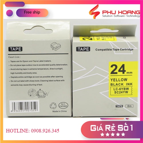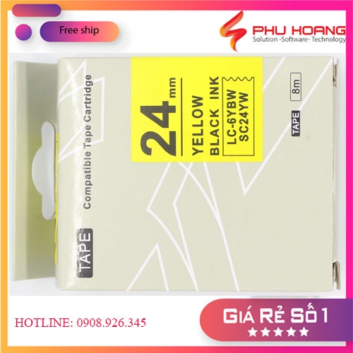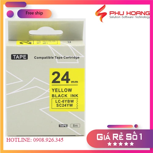 Băng mực in nhãn SC24YW/LC-6YBW sử dụng cho máy in Tepra và Espon chữ đen nền vàng khổ rộng 24mm