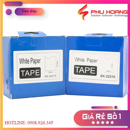 Nhãn in EK-22210, kích thước: 29mm*30.48m, nhãn liên tục, giấy decal, tương thích với máy Brother QL (DK-22210)