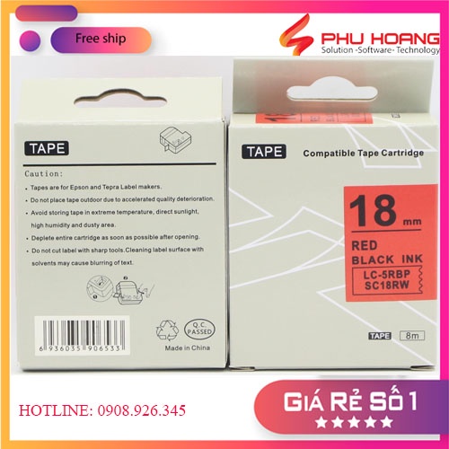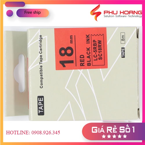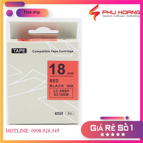 Băng mực in nhãn SC18RW/LC-5RBP sử dụng cho máy in Tepra và Espon chữ đen nền đỏ khổ rộng 18mm