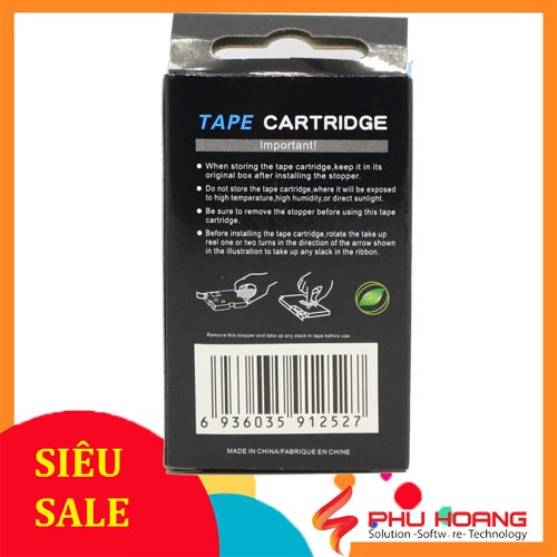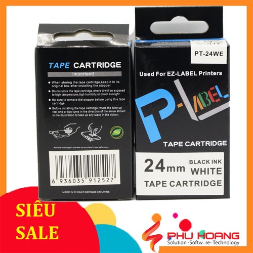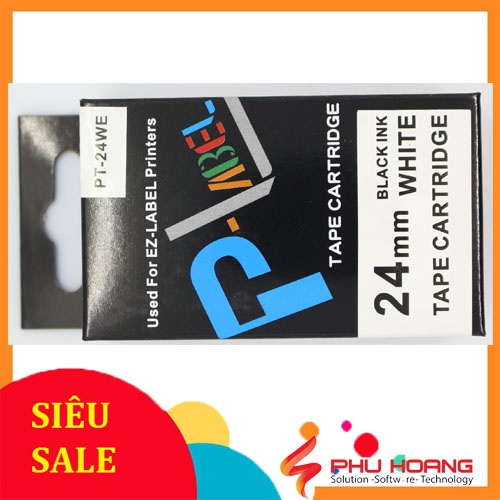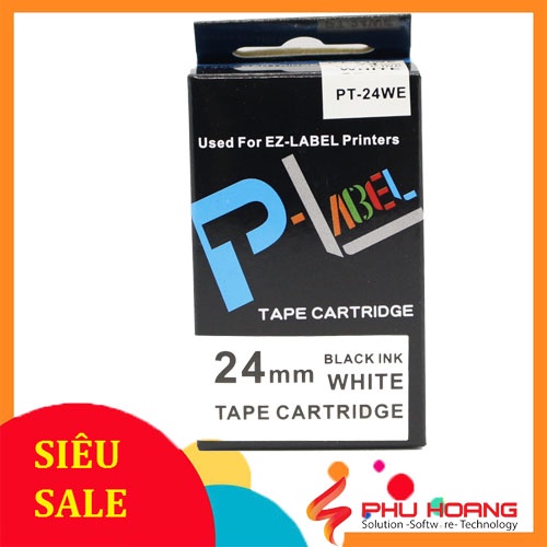 Nhãn in Casio PT-24WE, chữ đen nền trắng, khổ rộng 24mm