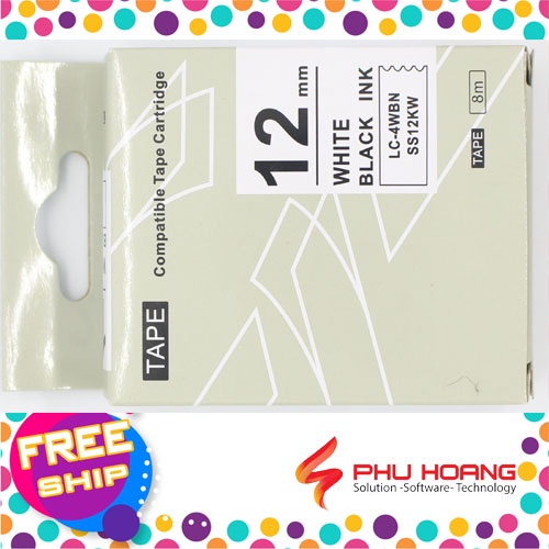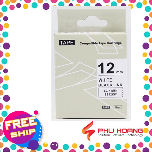 Băng mực in nhãn SS12KW/LC-4WBN sử dụng cho máy in Tepra và Espon chữ đen nền trắng khổ rộng 12mm