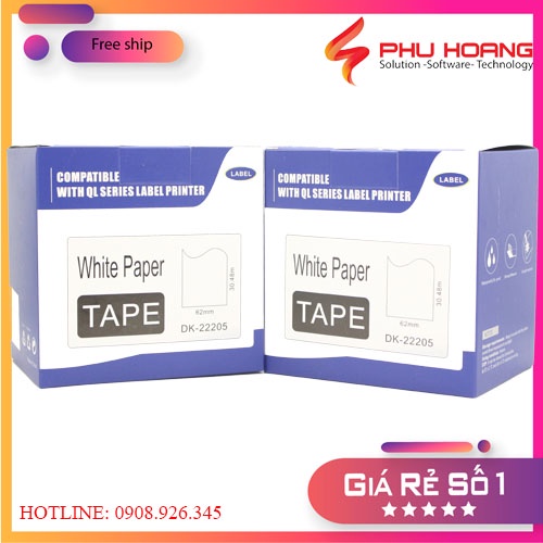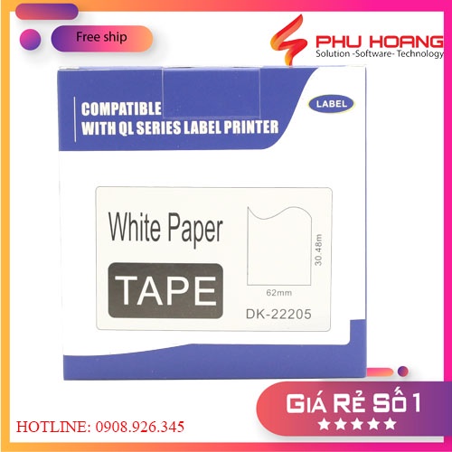Nhãn in EK-22205, kích thước: 62mm*30m, nhãn liên tục, giấy decal, tương thích với máy Brother QL(DK-22205), Phu Hoang