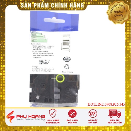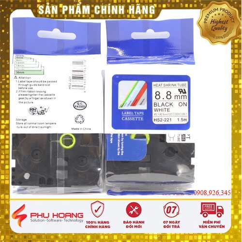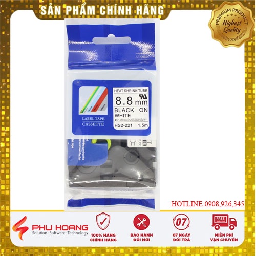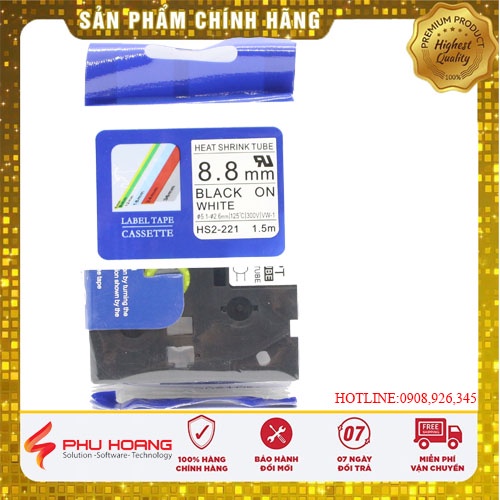 Ống Co Nhiệt HS2-221, Khổ 9mm X 1,5m, Cáp 2.6-5.1mm, Chữ đen, nền trắng, máy in nhãn Brother, phu hoang company